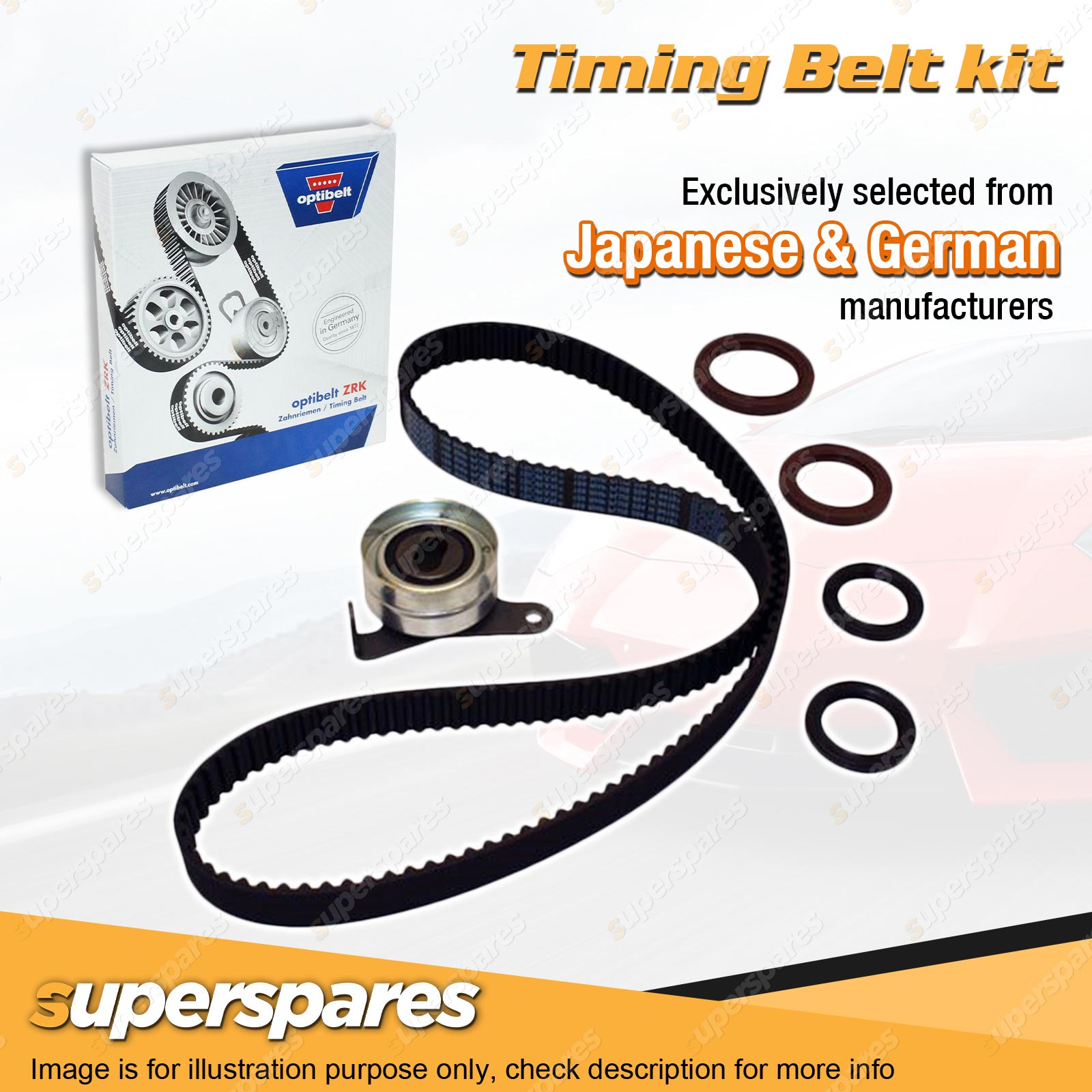 Timing Belt: All of superspares timing belt kits utilize a genuine Optibelt brand belt. Optibelt has long since made a name for itself as a reliable partner to the international automotive industry. The engineers of the German family-run business invest a lot of time and even more energy into the research of materials. |