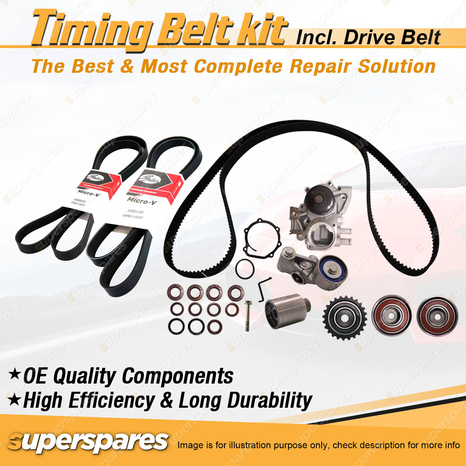 Content : Superspares Timing Belt Kit inc Hydraulic Tensioner & Waterpump & Gates Drive Belt
