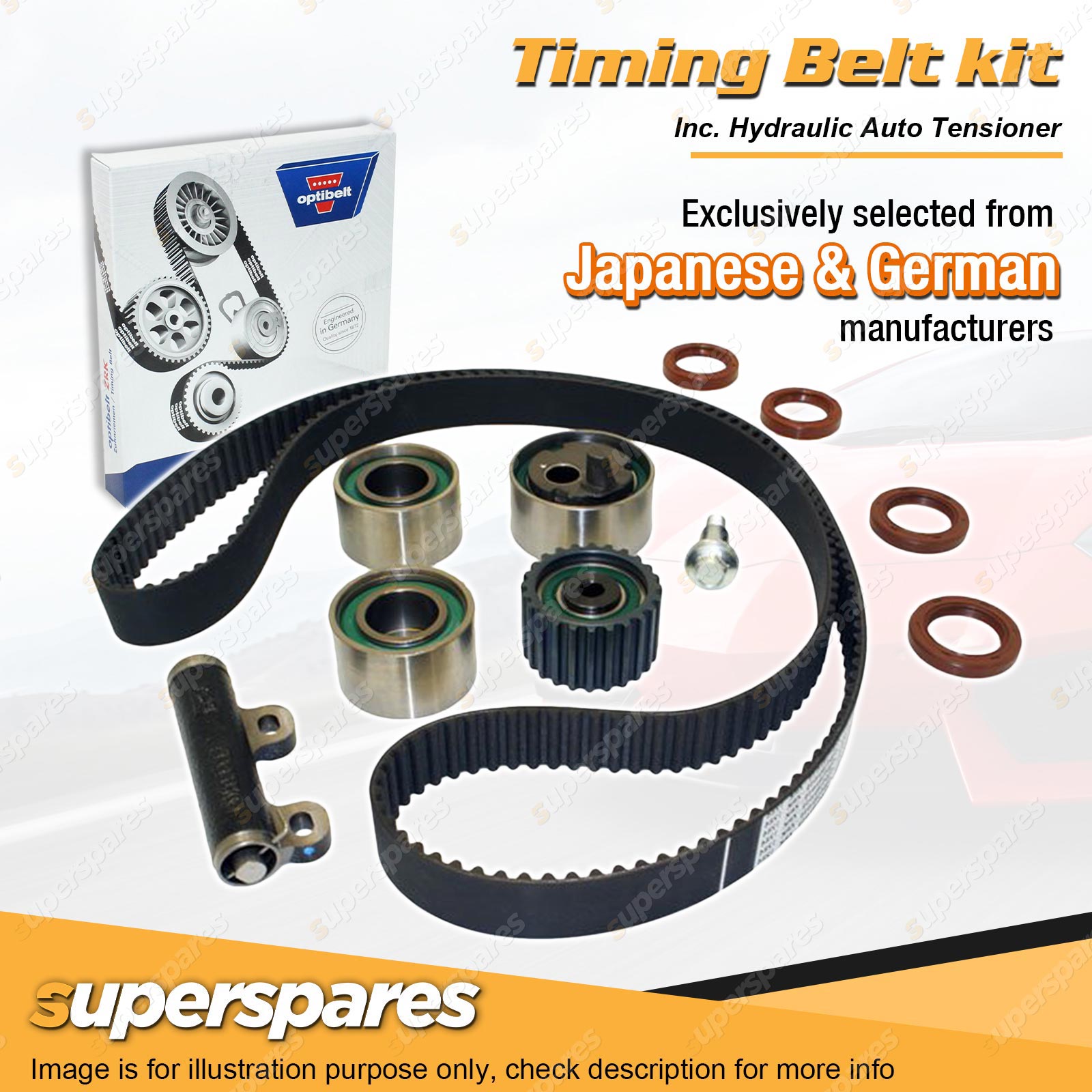 | Timing Belt: All of superspares timing belt kits utilize a genuine Optibelt brand belt. Optibelt has long since made a name for itself as a reliable partner to the international automotive industry. The engineers of the German family-run business invest a lot of time and even more energy into the research of materials. |