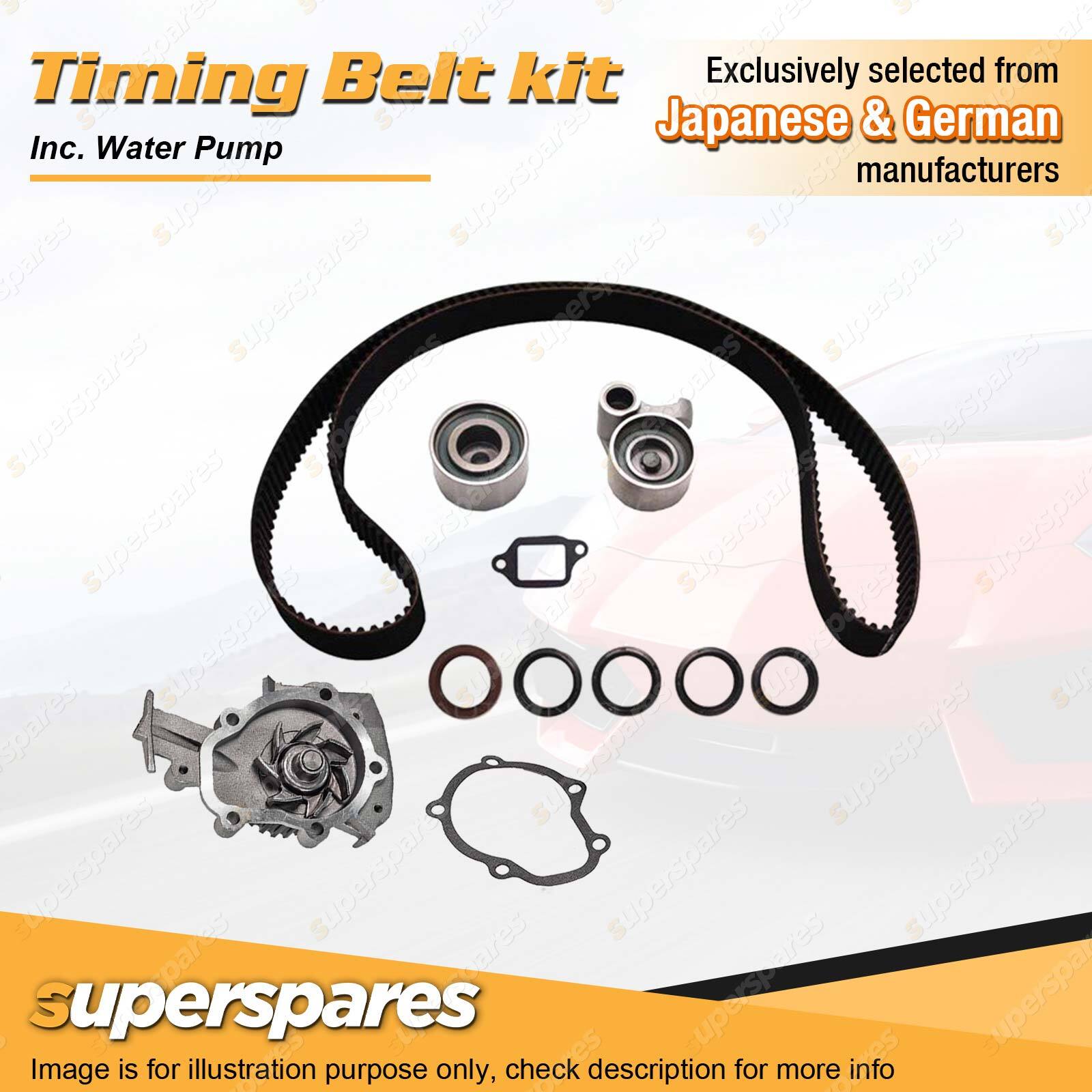 Kit Includes: 1 x Timing belt, 1 x Tensioner Pulley, 1 x Idler Pulley, water pump , Seal kit (3 seals);