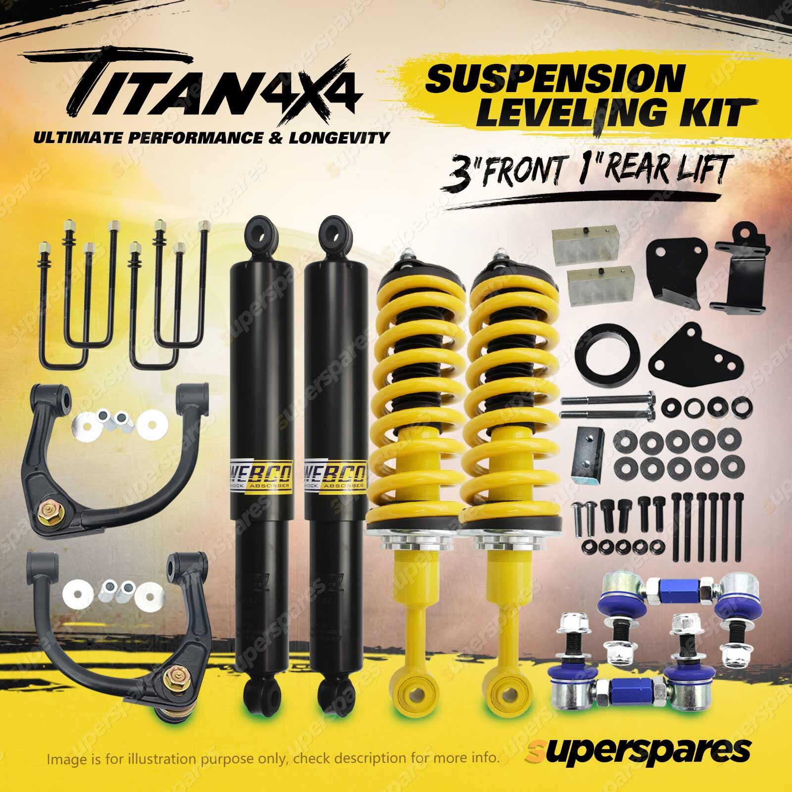 2 x Front Titan 4X4 Adjustable 2 - 3 Inch Complete Strut Pre Assembled With King Springs(With Bull Bar Or Winch 50-100kg)