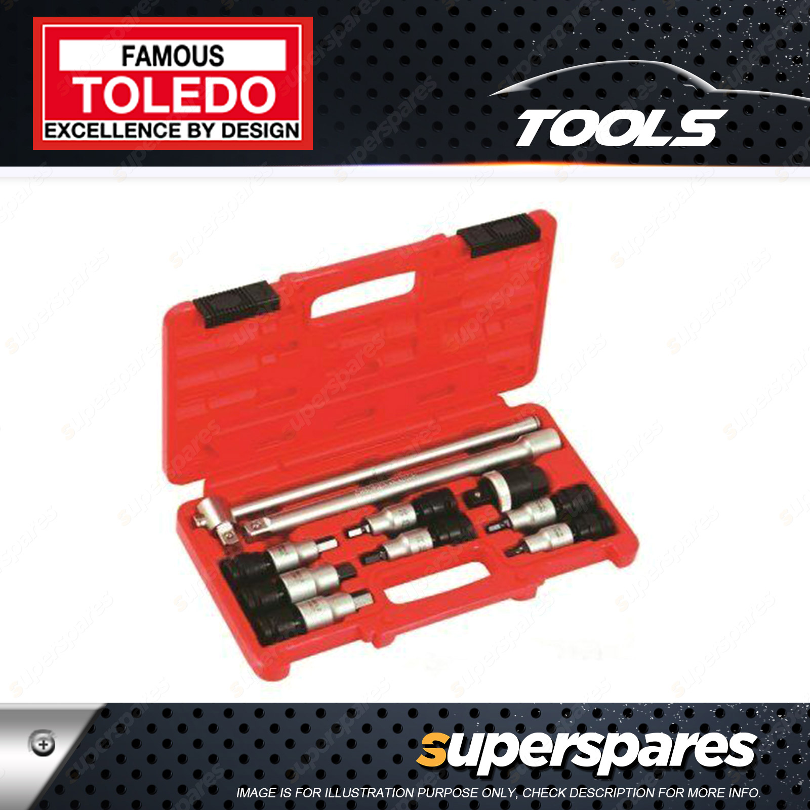 Toledo Universal Joint Insert Bit Socket Set 1/2"Dr SAE Hex 1/8" - 3/8" 10 Pc Universal joint sockets for use on SAE Hex fasteners used in modern automotive applications ITEM CONTENTS Name Qty |