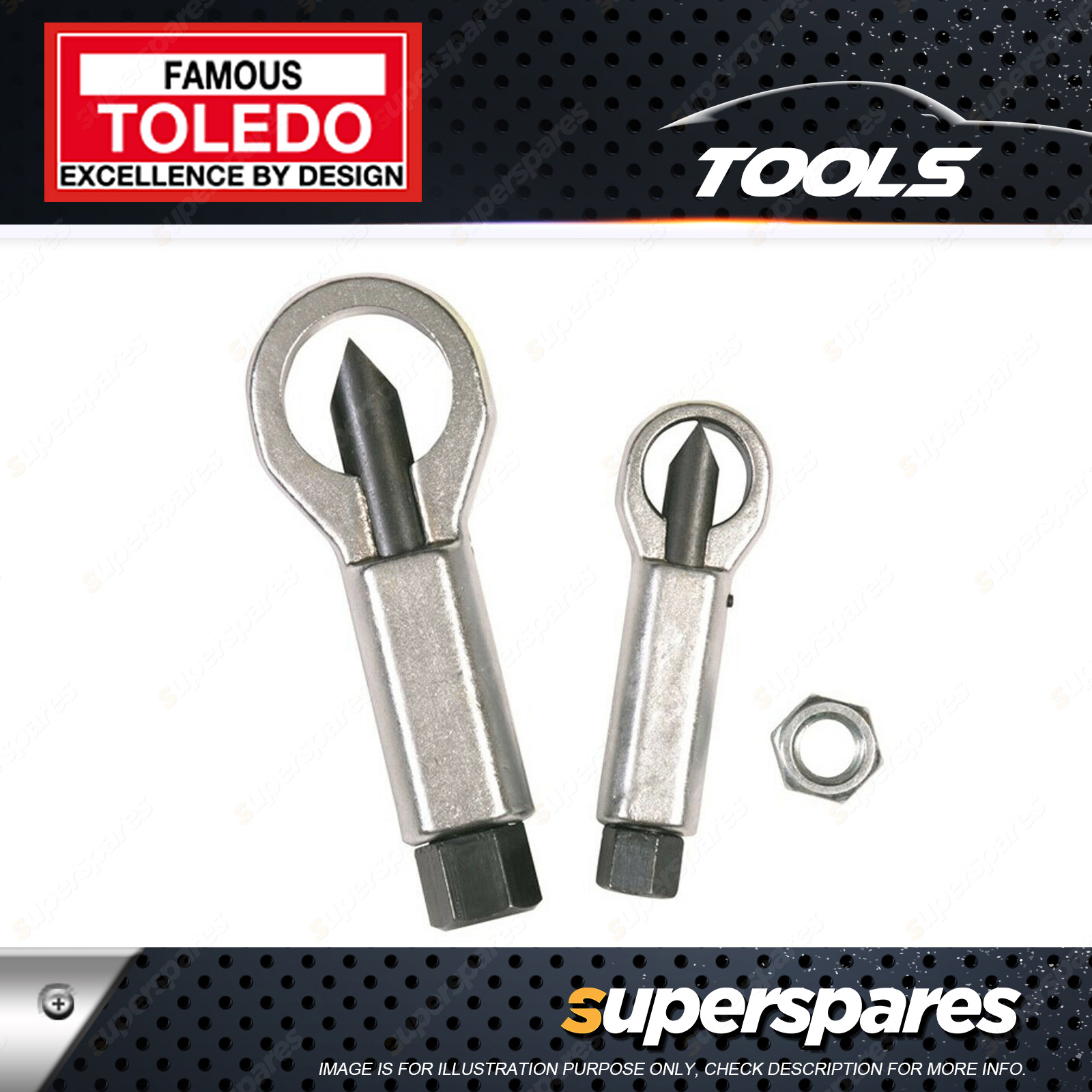 Toledo Nut & Stud Splitter 2pc Set 3 - 16mm / 10 - 25mm Designed for the removal of rusted, seized or stubborn nuts safely and without damage to the stud or bolt Features a flat round head design to allow operation in areas where working space is limited Manufactured from drop forged vanadium steel for superior strength and durability under impact 2 piece set Small nut splitter size range: 3-16mm Large nut splitter size range: 10-25mm Designed for the removal of rusted, seized or stubborn nuts safely and without damage to the stud or bolt Features a flat round head design to allow operation in areas where working space is limited Manufactured from drop forged vanadium steel for superior strength and durability under impact 2 piece set Small nut splitter size range: 3-16mm Large nut splitter size range: 10-25mm |