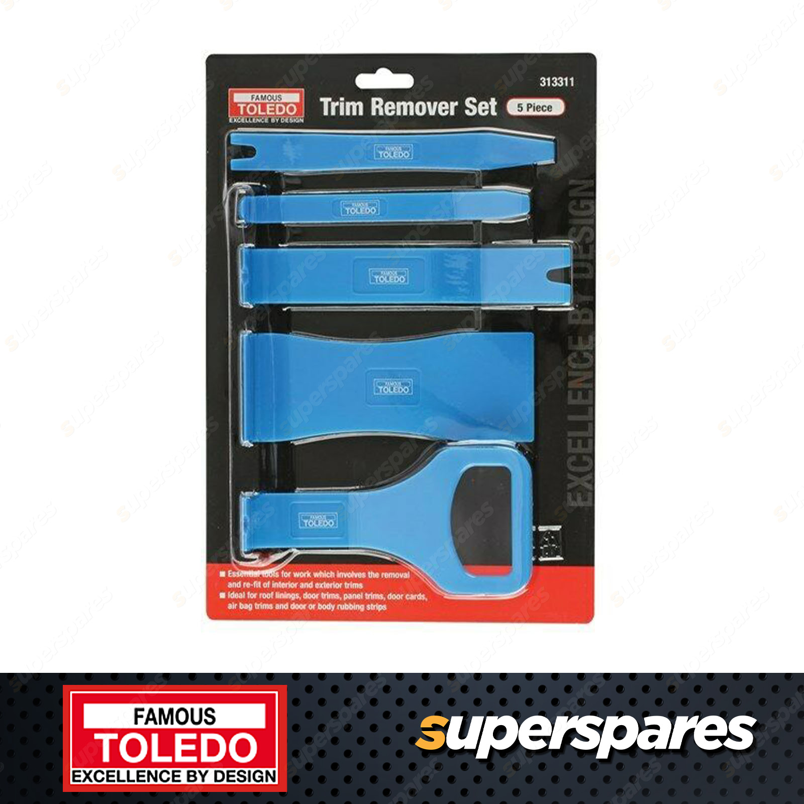 Trim & Clip Remover Set 5 Pc Multiple tool sets for the easy, damage free removal of trim, moulding, door panels and dashboards |