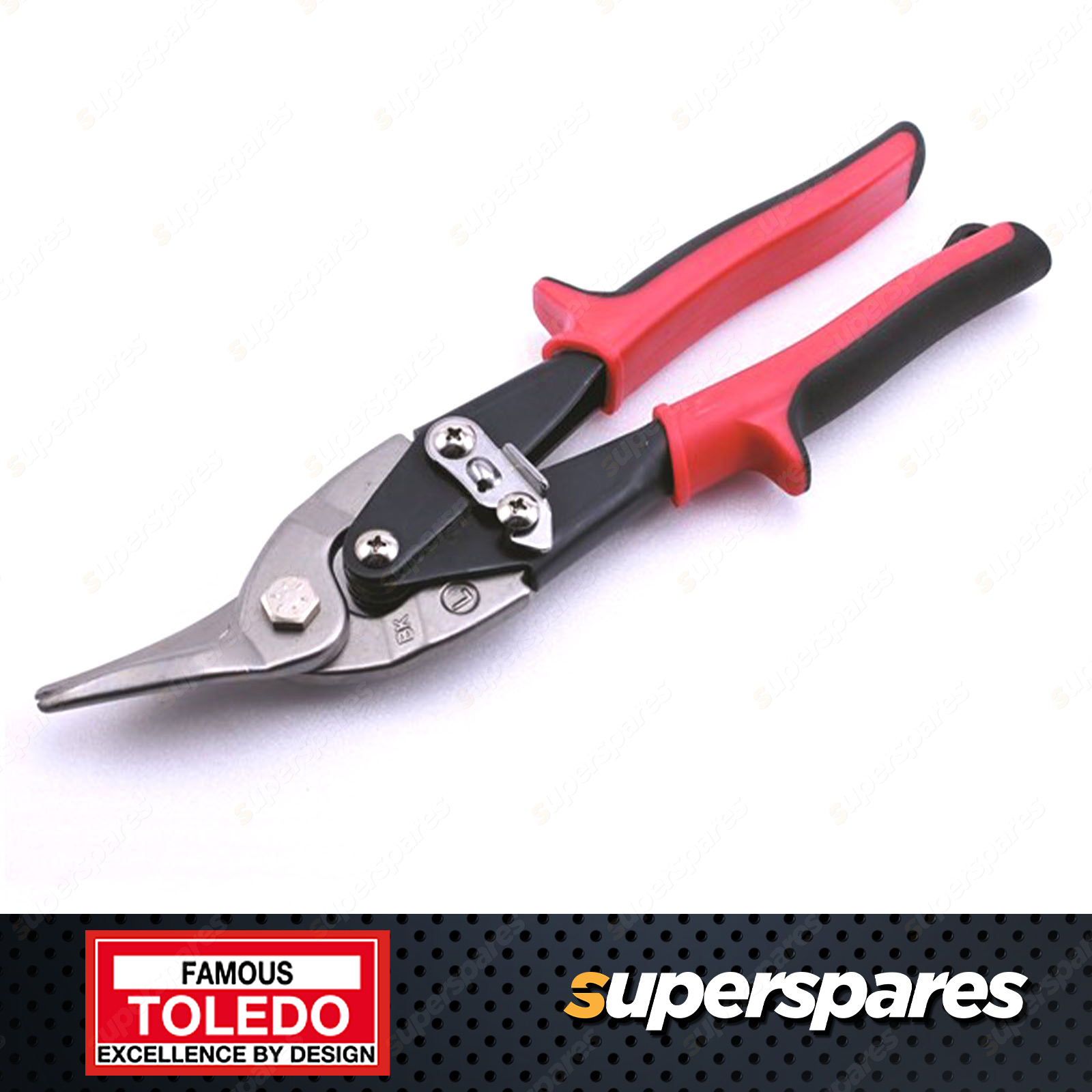 Toledo Aviation Cutting Snips - Left Cut (Red) 250mm Serrated cutting blades are heat treated for superior strength, toughness and durability |