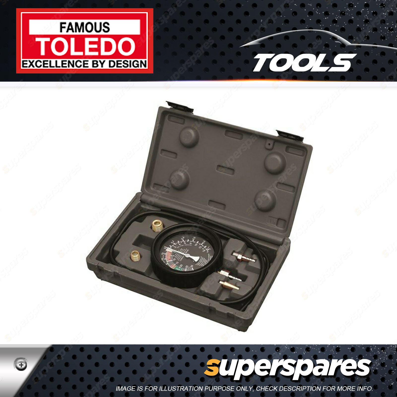 Toledo Fuel & Vacuum Pump Pressure Tester Simple and effective kit to test for worn or defective components in mechanical fuel pumps and vacuum systems ITEM CONTENTS Name Qty |