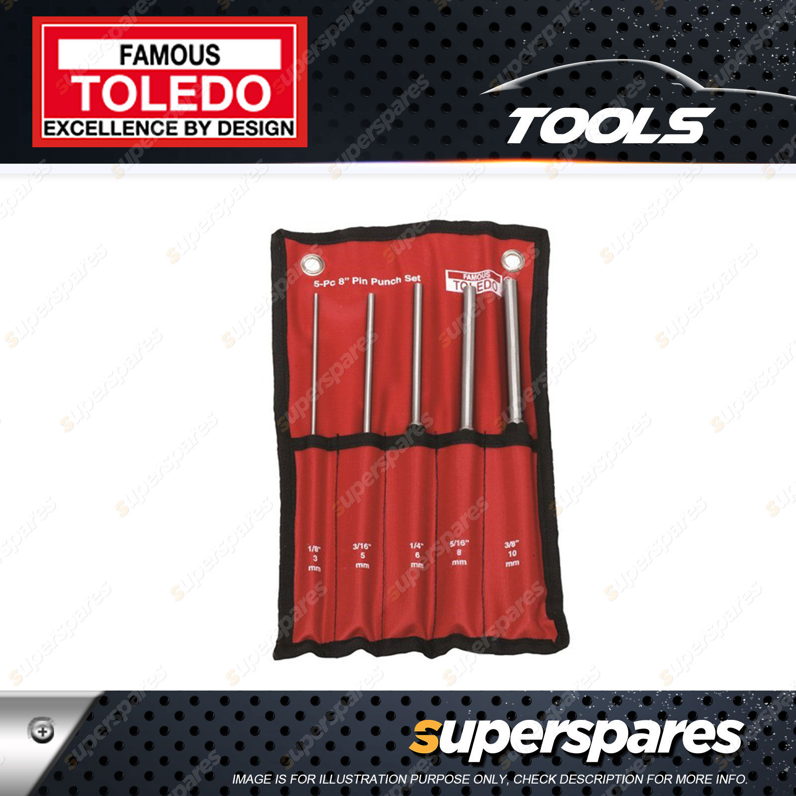 Contents: Toledo Heavy Duty Extra Long Pin Punch Set 5 pcs - Size 3 5 6 8 10mm