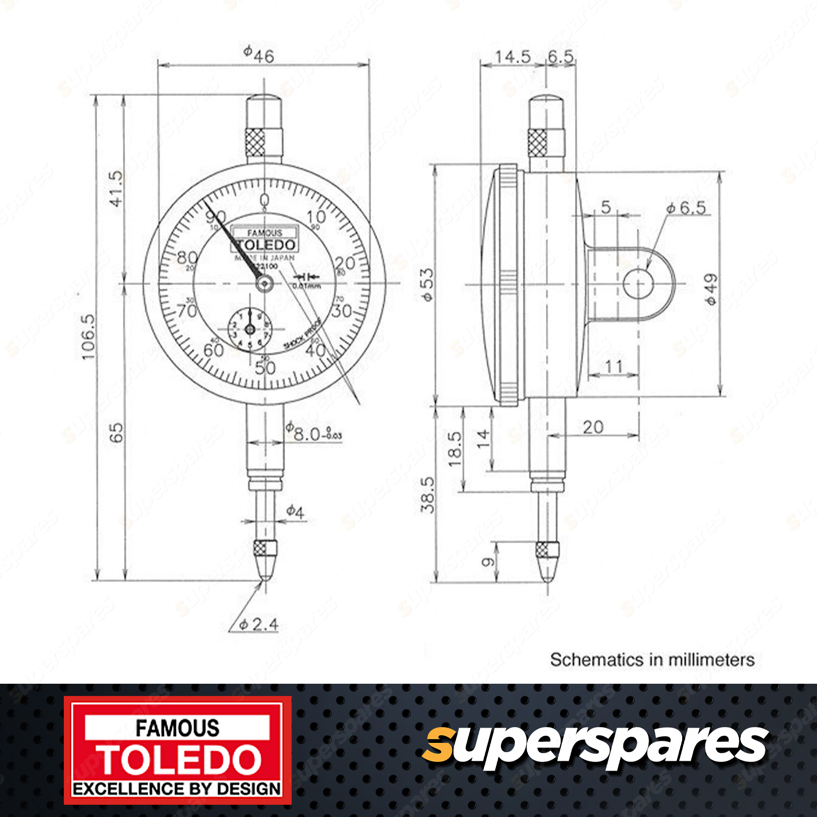 Toledo Metric Analogue Dial Gauge - 0.01x10mm High precision expert dial gauges for precision measuring work |