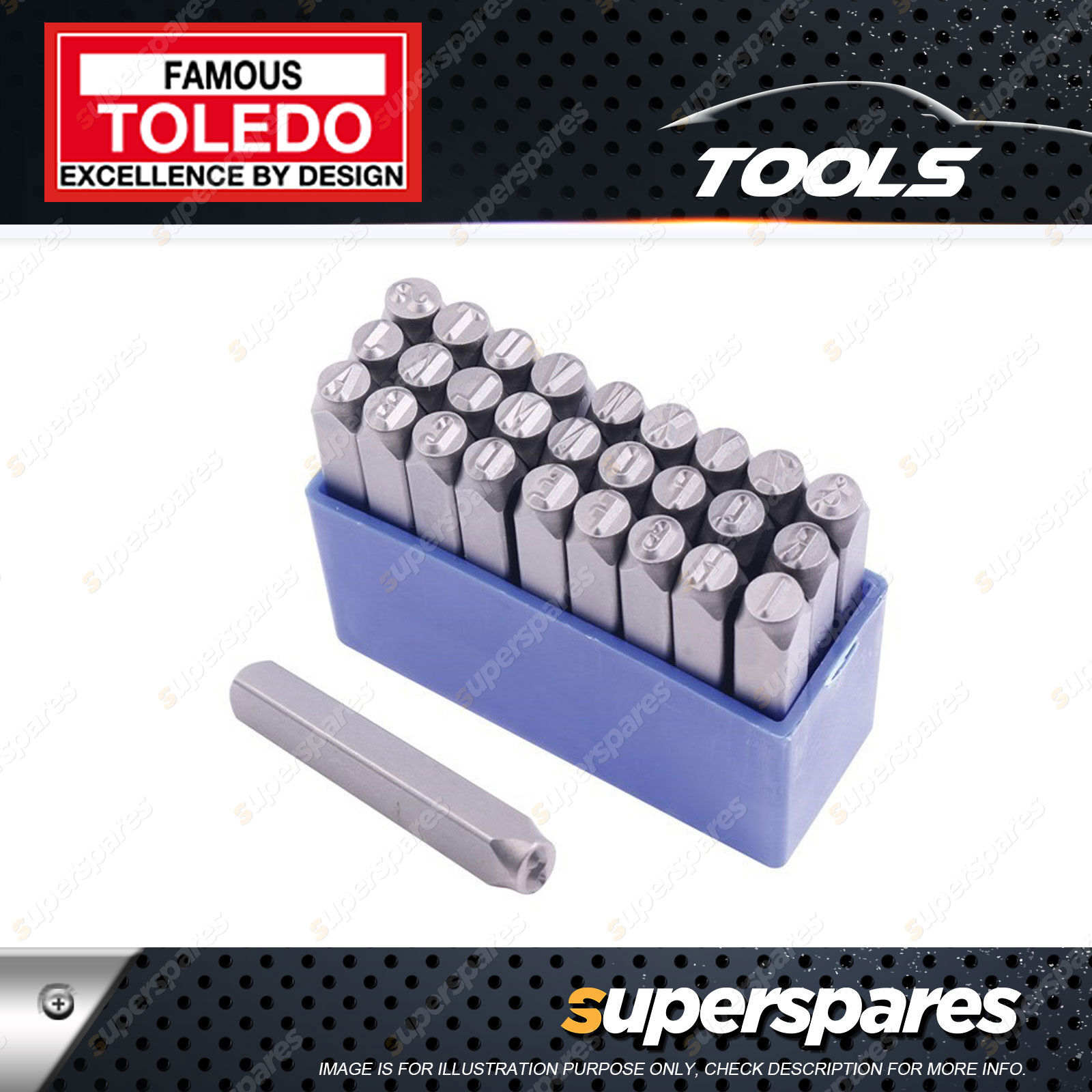 Contents: Toledo Letter Punch Set 27 pcs - Character Size 10mm 3/8" Long Shank Design