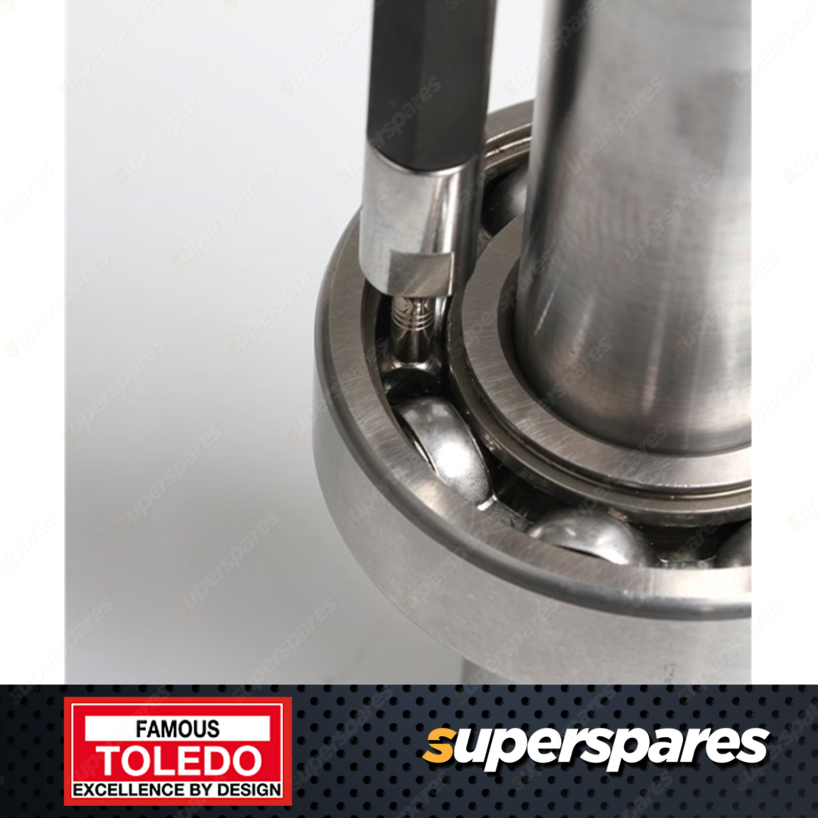 Toledo Twin Pull Puller Kit - Medium Spread: 45-120mm ITEM CONTENTS Code Name Qty Special pullers for the removal of blind housing bearings without the need to dismantle machinery or remove the running shaft Positive seating allows even tension on inner and outer bearing rings, reducing resistance Stabilisers reduce sideways movement and self centre the puller |