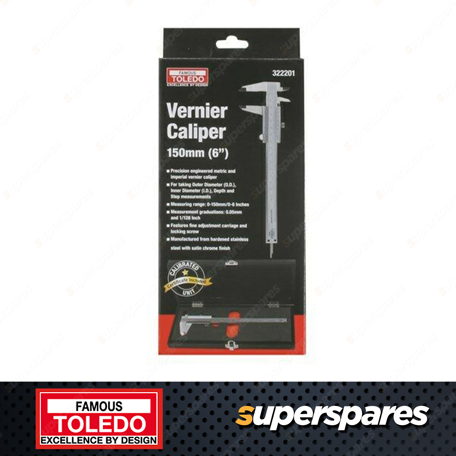 Toledo Metric & Imperial Analogue Vernier Caliper - 150mm High precision expert Vernier Caliper features metric and imperial graduations |