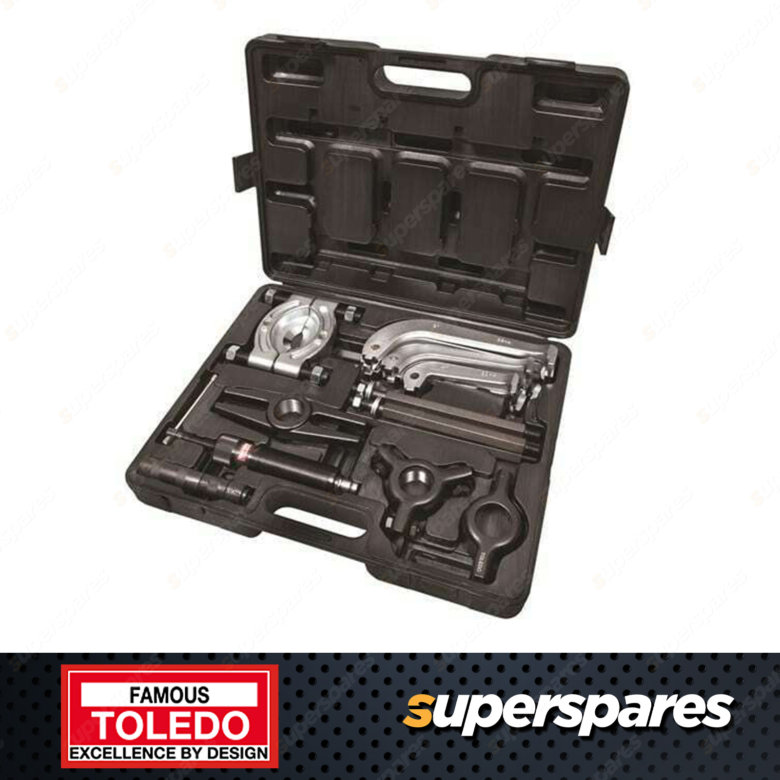 Toledo Puller & Bearing Separator Combination Kit Hydraulic 10 tonne Spread: 180mm Code Name Qty Hydraulic bearing puller combination kit provides a complete pulling and separating solution |