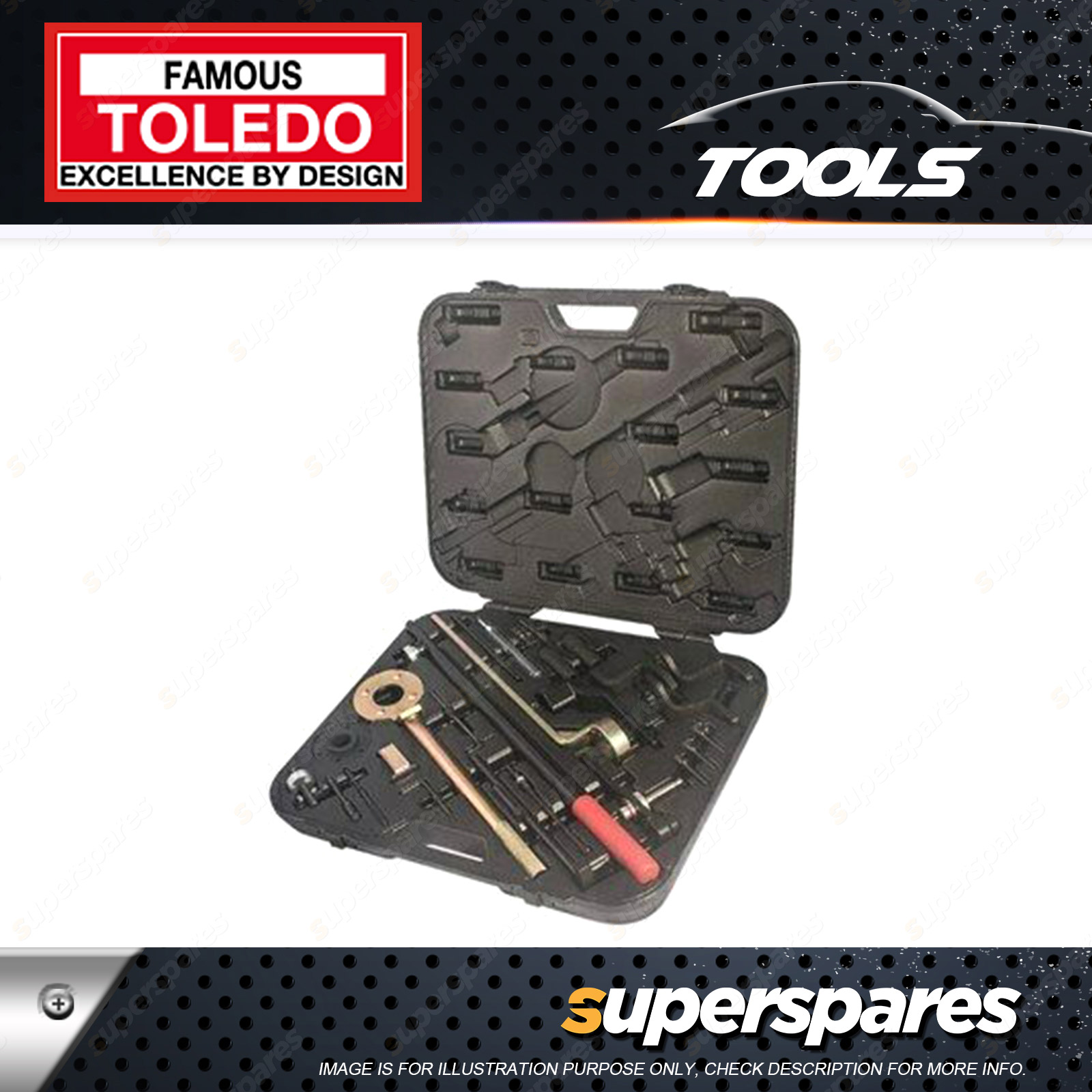 Toledo Timing Tool Kit - Suitable for Subaru, Honda, Hyundai, Mazda Universal timing tool kit contains a comprehensive range pulley holding and pulling tools suitable for popular Australian, Japanese and Korean applications Fuel Type Petrol & Diesel Suits Daewoo Honda Holden Hyundai Mazda Mitsubishi Subaru *Abbreviated list only