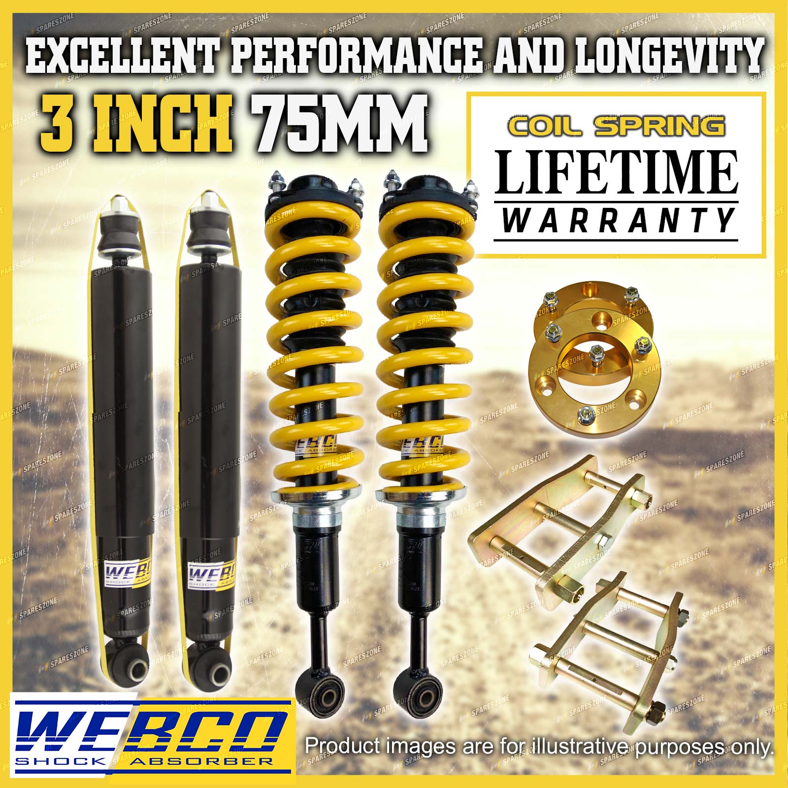 As car enthusiasts ourselves we completely understand the need for only wanting the best top quality aftermarket parts for your vehicle from a reliable and trustworthy source. We have utilised our understanding of this need to develop the best quality lift kits and build strong relationships with out valued customers; here's how... eBay have listed us as a "Top Rated Seller" with a 99.4% Positive feedback rating. We also offer a 30 day change of mind return period with a 100% fitment guarantee to ensure your peace of mind. Spareszone's lift kits offer an immense improvement in suspension performance and comfortability when compared to the standard stock suspension of your vehicle giving our customers a greater driving experience on and off road. |