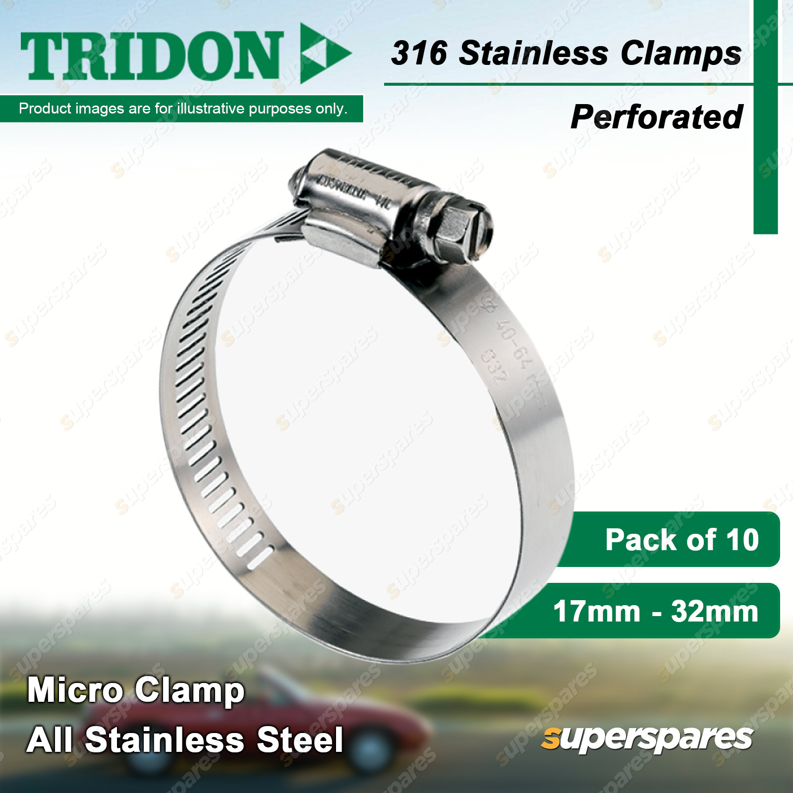 The Tridon 316 stainless perforated band clamp range provides superior design and proven reliability. |