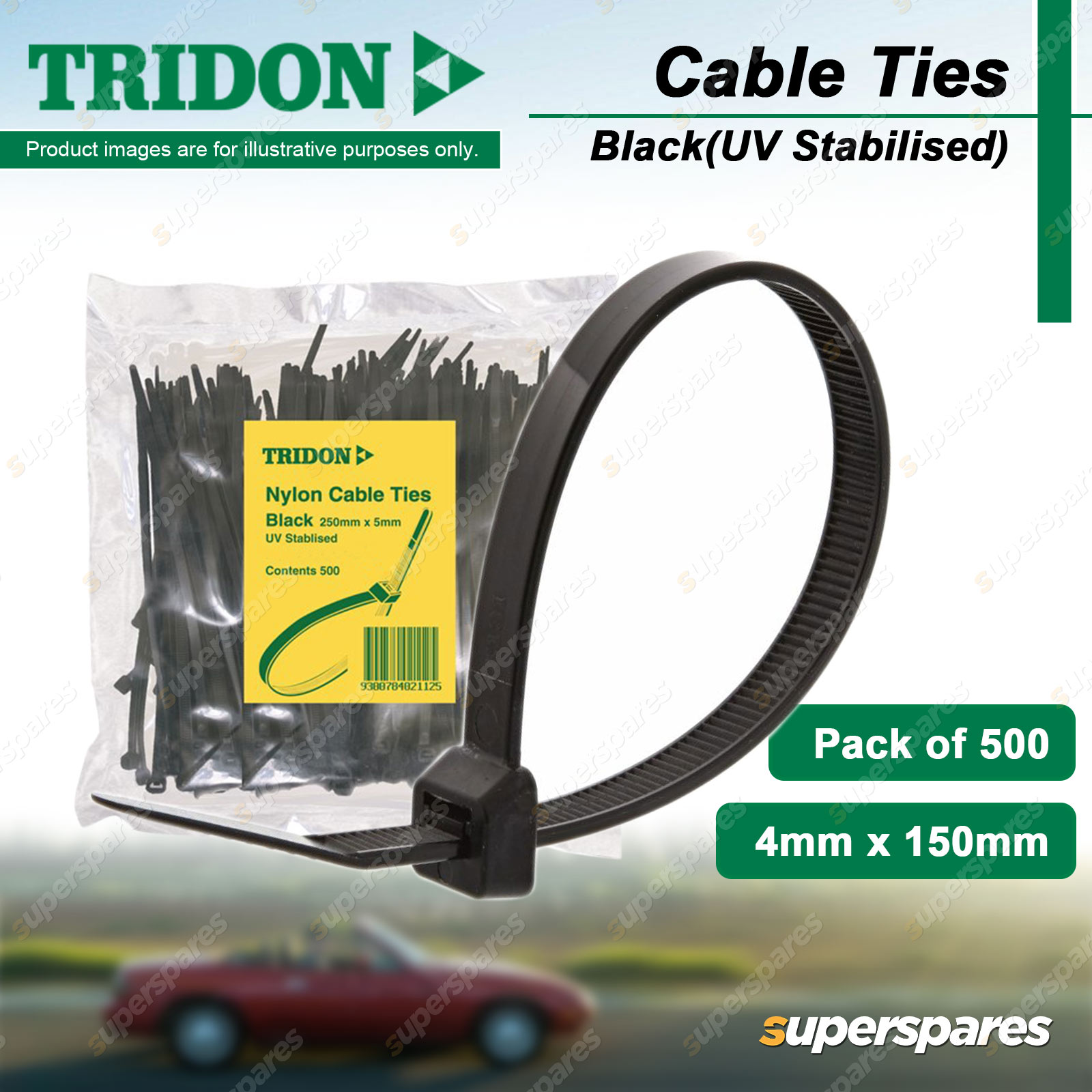 Content : Tridon Cable Ties - Black(UV Stabilised) Size : 4mm x 150mm Quantity : 500 |