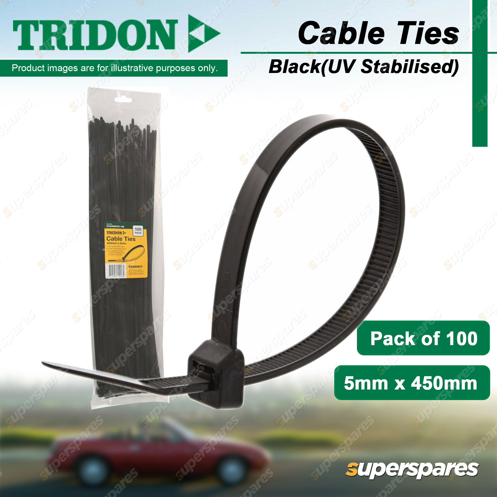 Content : Tridon Cable Ties - Black(UV Stabilised) Size : 5mm x 450mm Quantity : 100 |