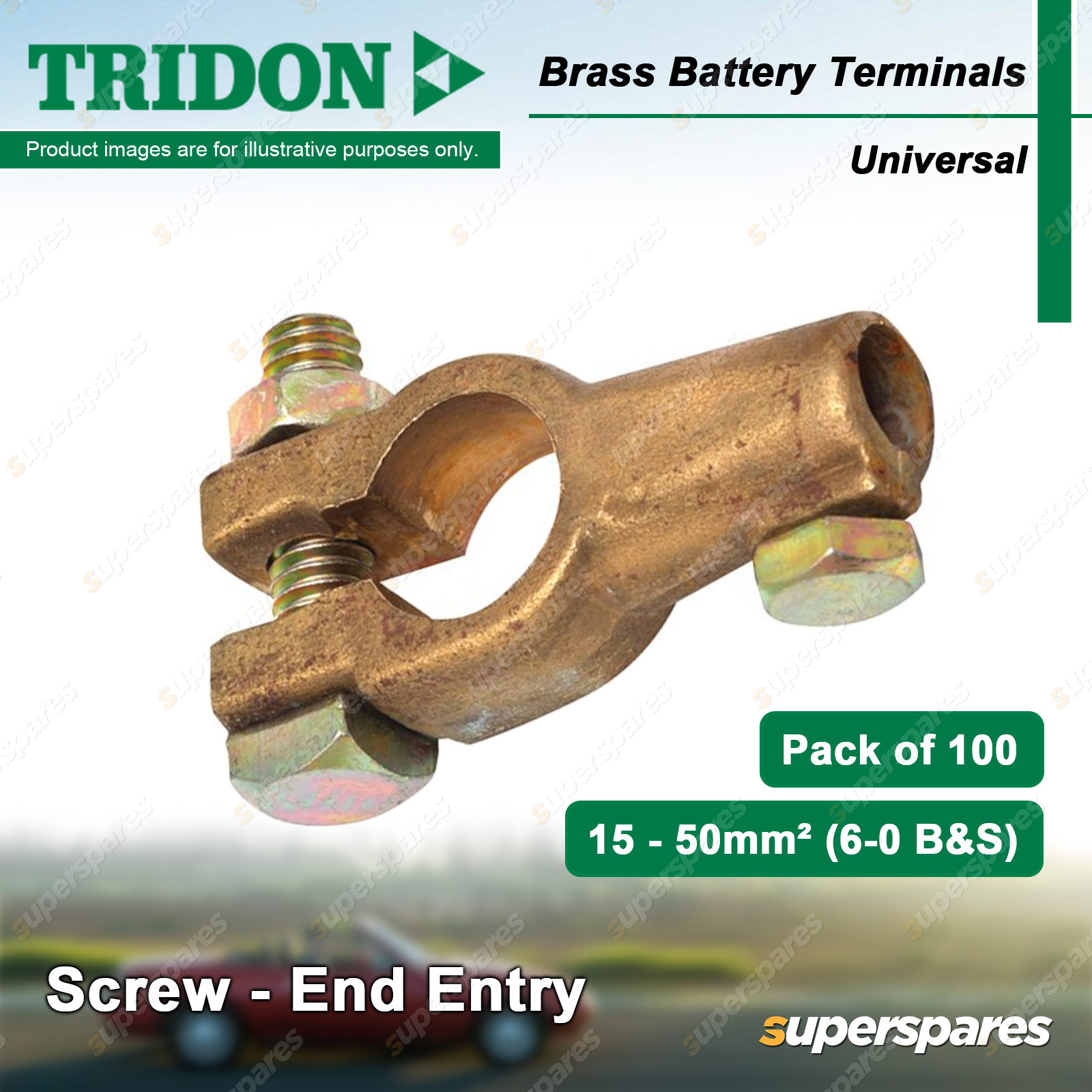 Content : Tridon Battery Terminals Finish : Brass Terminal Type : Screw - End Entry Post Type : Universal (U) Quantity : 100 Packaging : Boxed |
