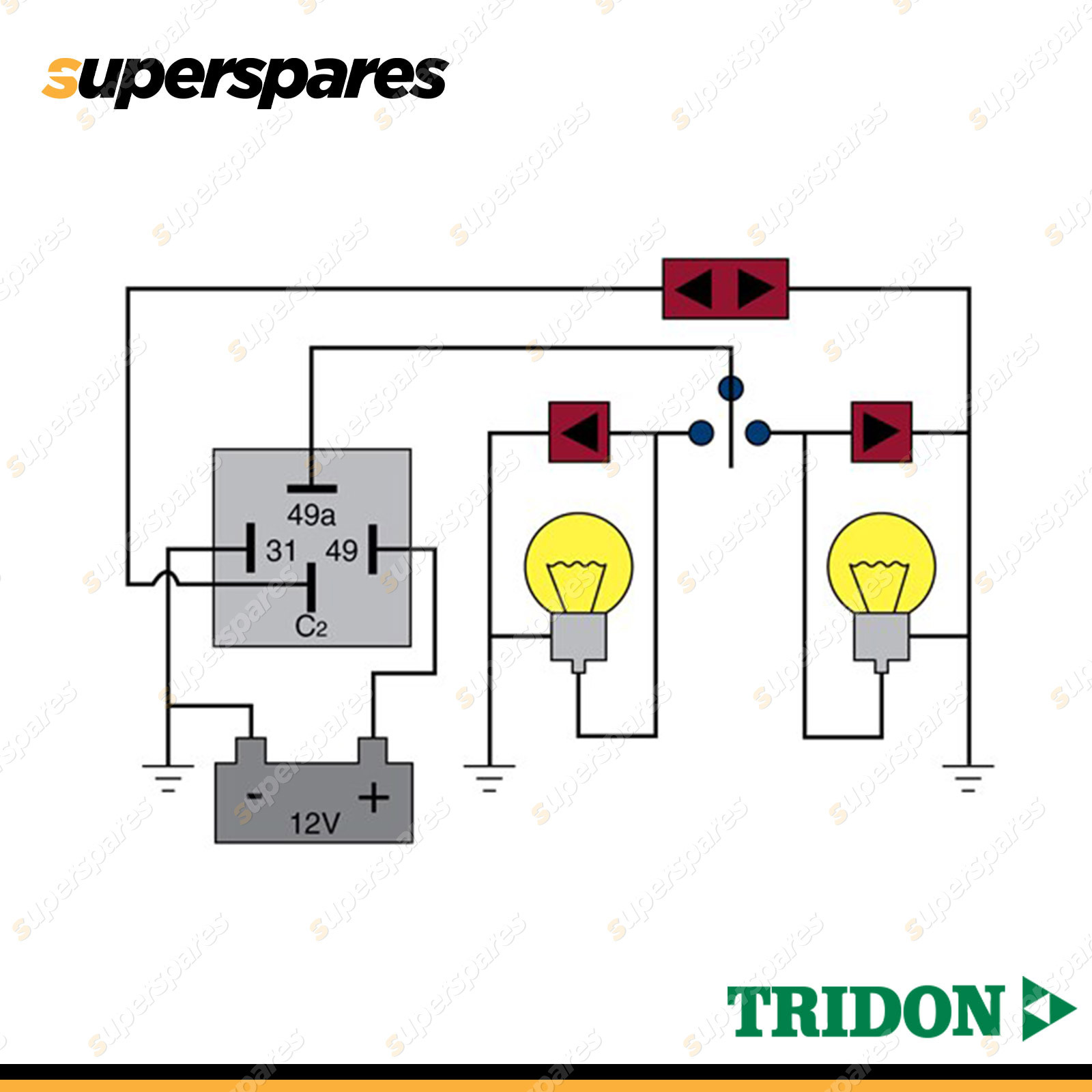 Most of the Tridon electronic flashers are load sensitive whereby if bulb failure occurs, the flash rate doubles to indicate outage or bulb failure. |