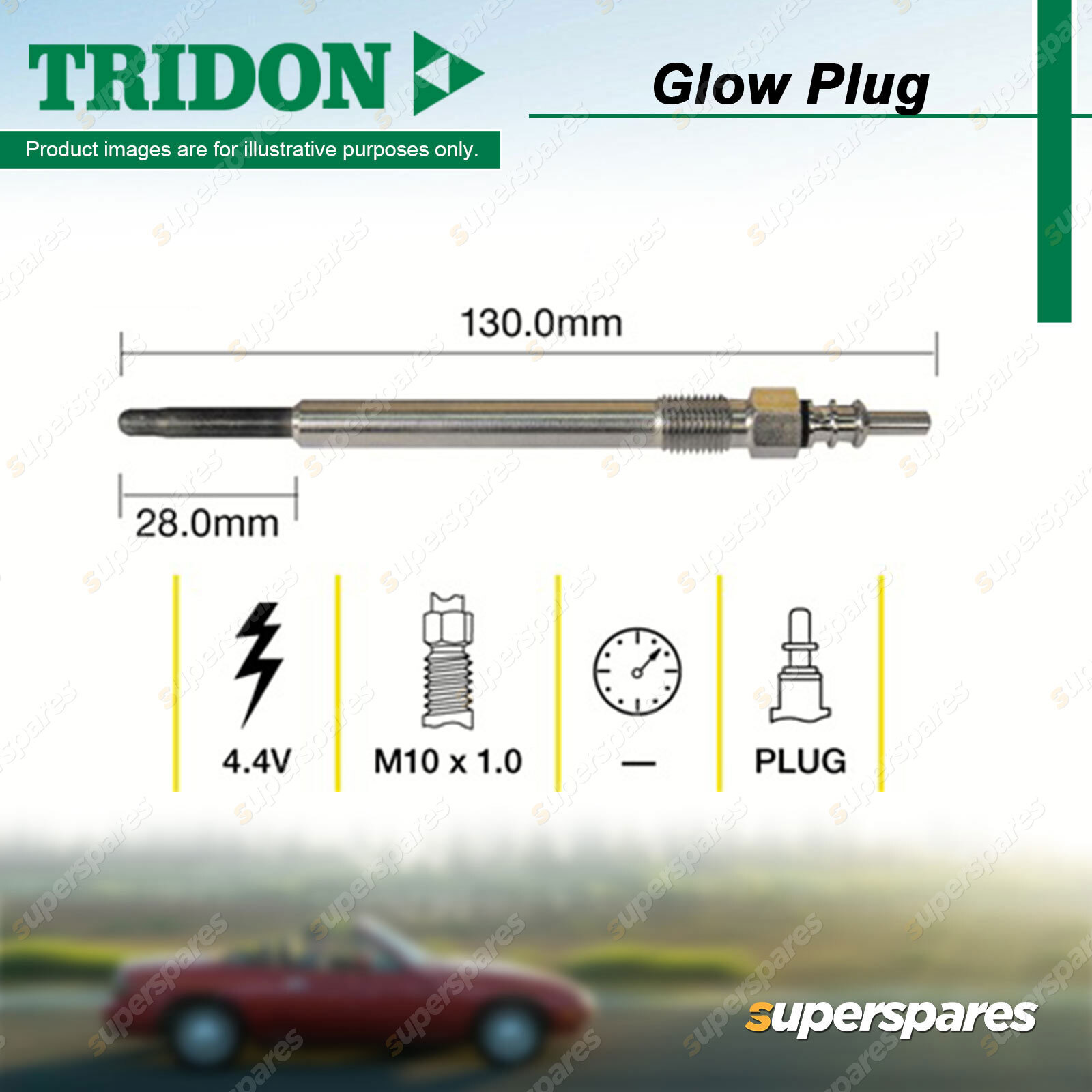 Content : 1 x Tridon Glow Plug Parameters : Heating Filament: Dual Coil Suit Vehicle : |
