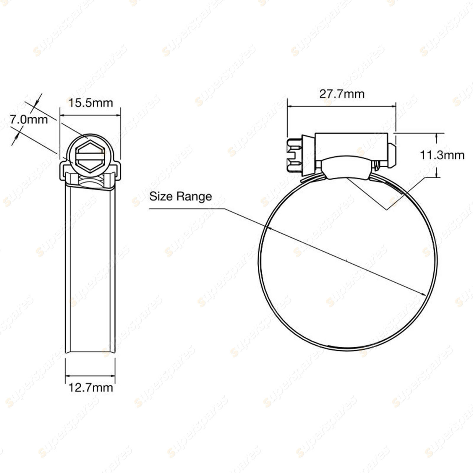 Specifics Size : 16mm - 27mm Band : 430 Stainless Steel Housing : 430 Stainless Steel Screw : Carbon Steel Zinc Plated |