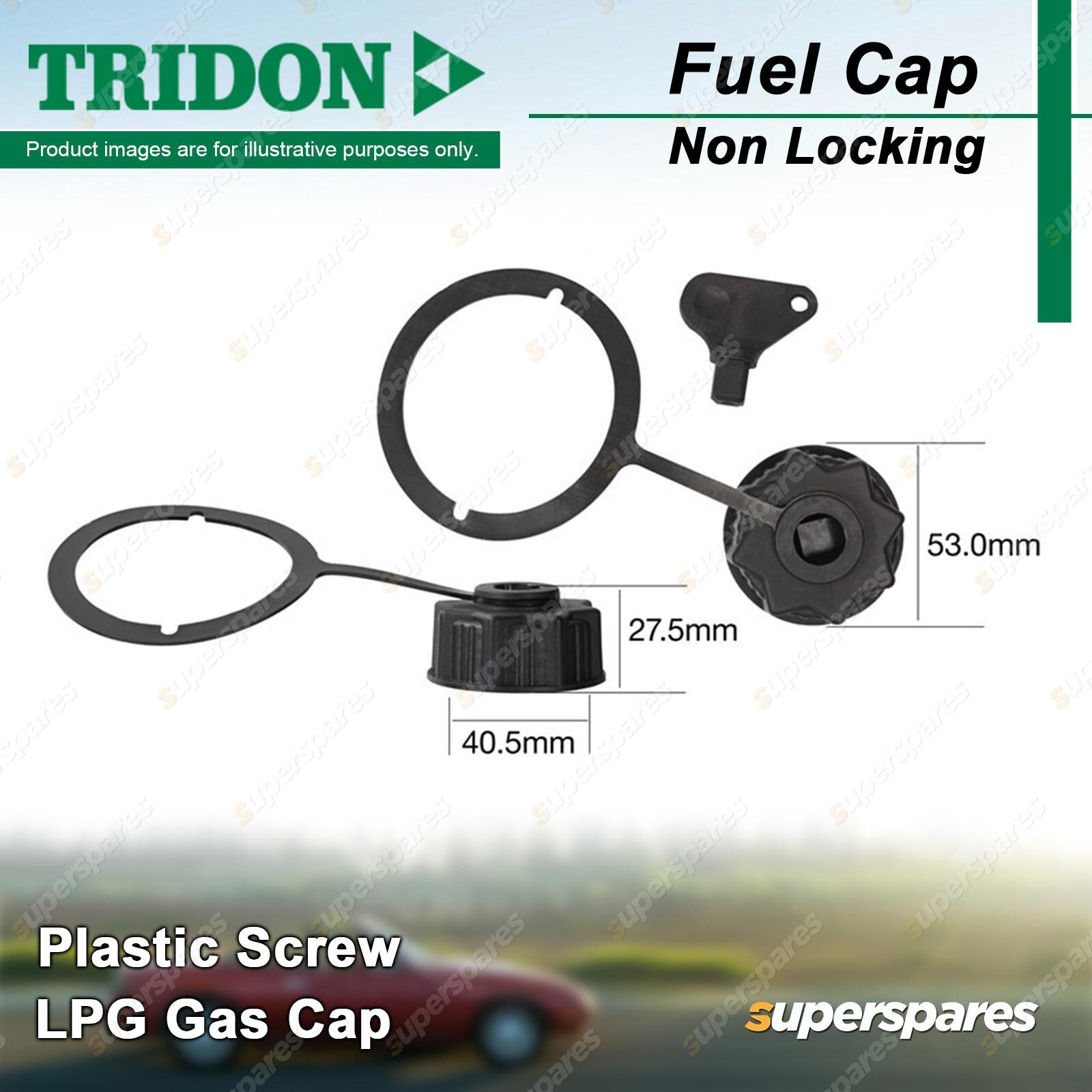 Content : 1 x Tridon Non Locking Fuel Cap with Key Fuel Type : LPG Gas Cap Cap Style : Plastic Screw |