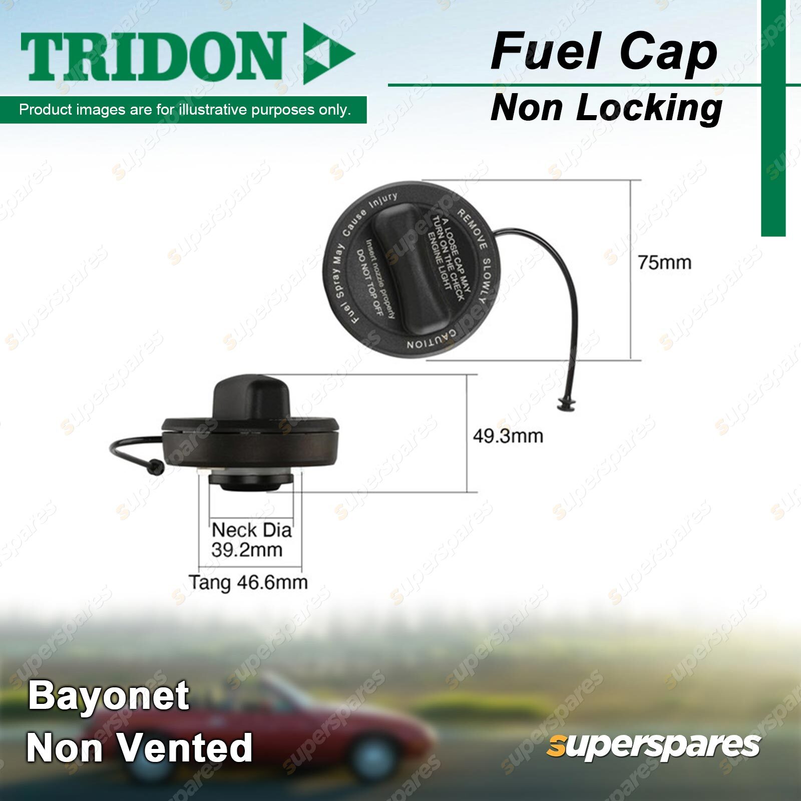 Content : 1 x Tridon Non Locking Fuel Cap Fuel Type : Non Vented Cap Style : Bayonet |