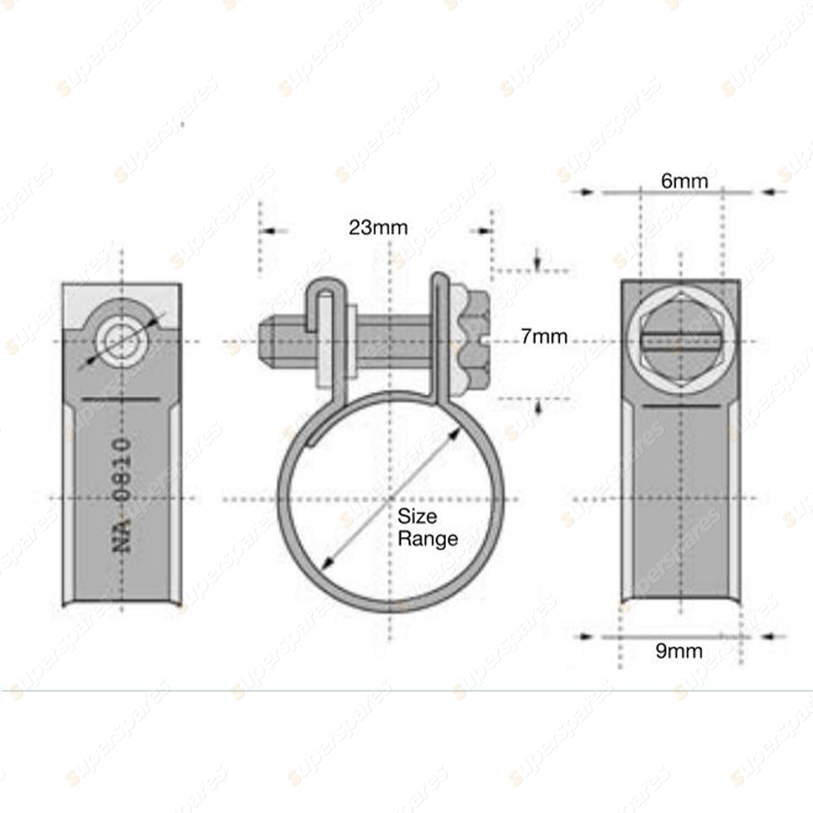 Specifics Size : 12mm - 14mm Band : Carbon Steel Zinc Plated Housing : Carbon Steel Zinc Plated Screw : Carbon Steel Zinc Plated |