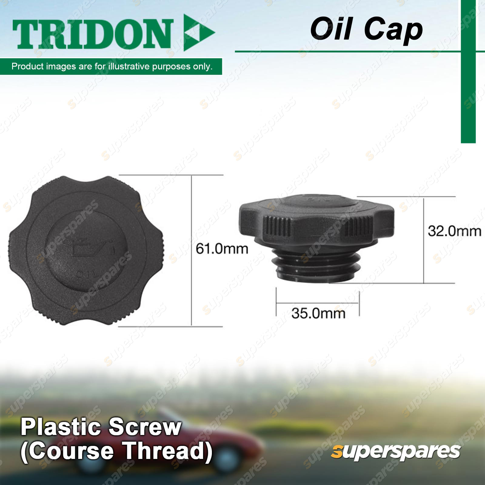 Content : 1 x Tridon Oil Cap Cap Style : Plastic Screw (Course Thread) |