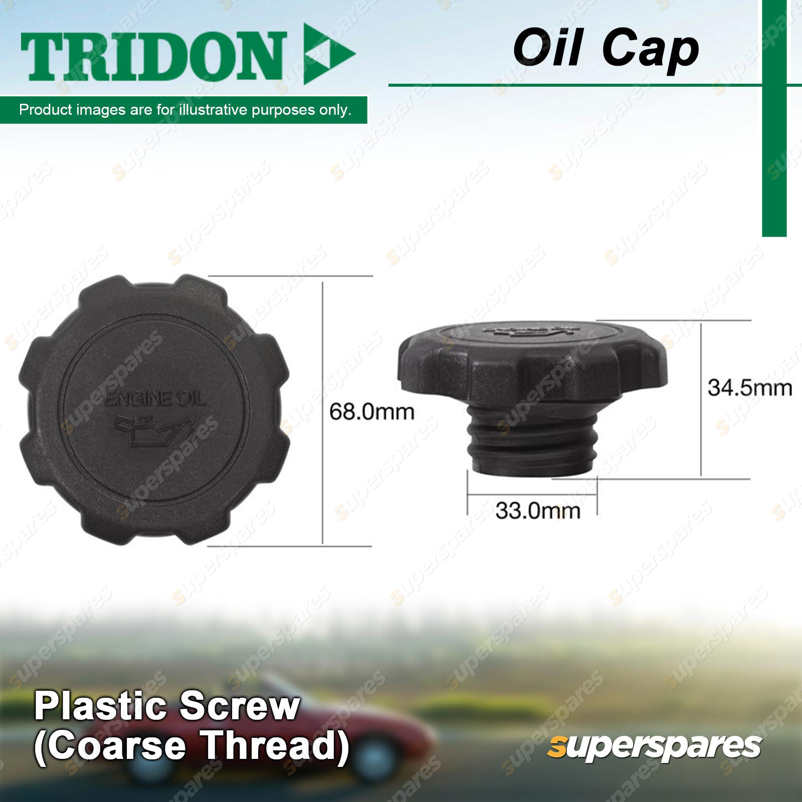 Content : 1 x Tridon Engine Oil Cap Cap Style : Plastic Screw (Coarse Thread) |