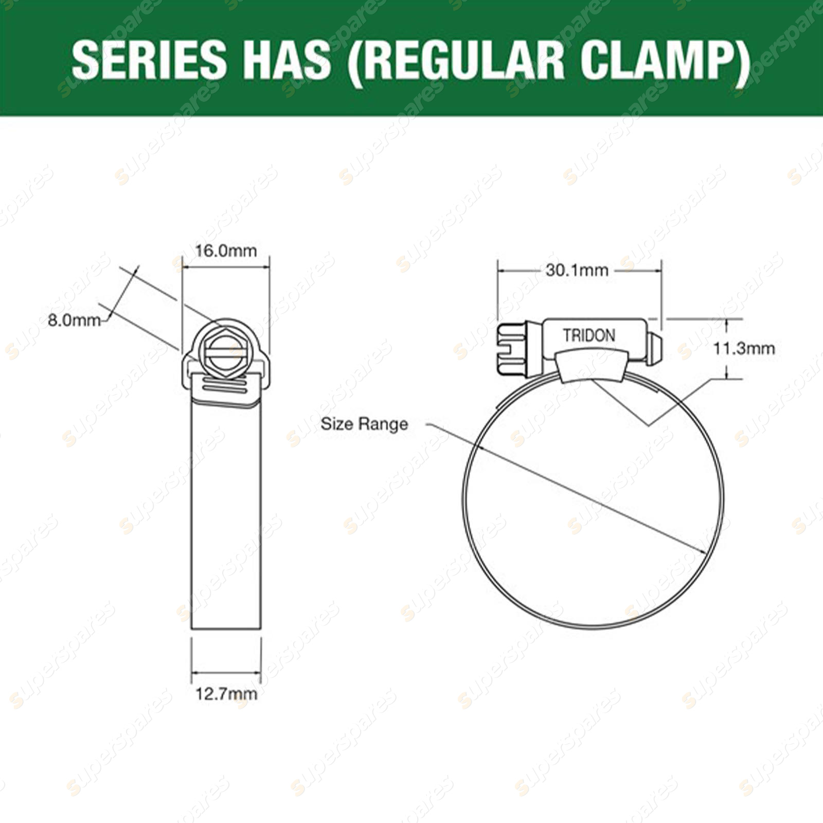 Content : Tridon Perforated Band Clamp - All Stainless Steel Qty Per Card : 1 Series : HAS Series (Regular Clamp) Packaging : Carded Clamp |