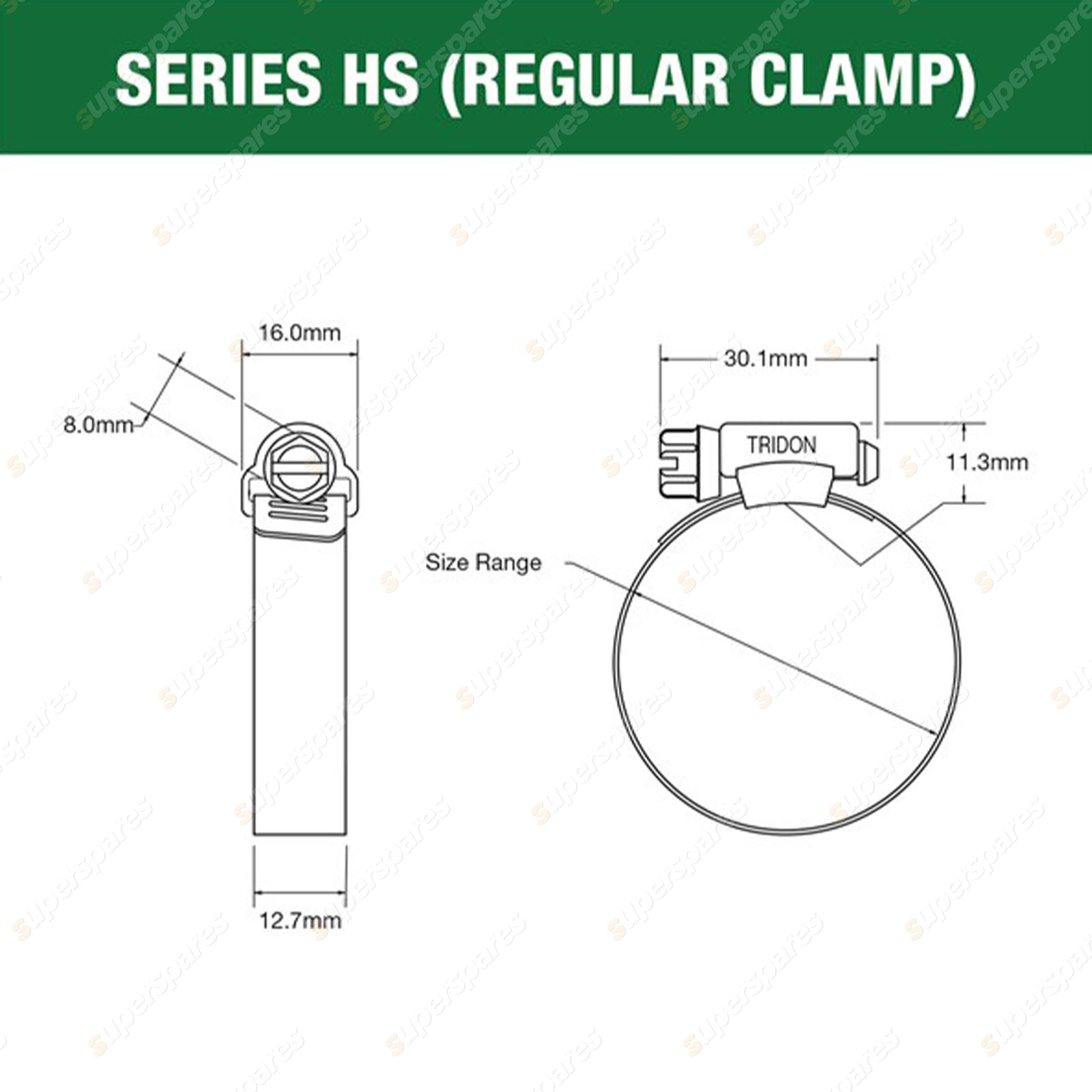 Specifics Size : 18mm - 32mm Band : 301 Stainless Steel Housing : Stainless Steel Screw : Carbon Steel Zinc Plated (Hex Head) |
