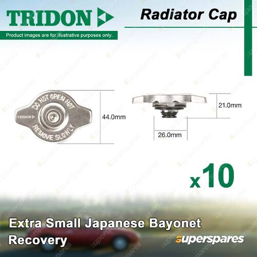Content : 1 x Tridon Radiator Cap System : Recovery Cap Style : Metal Pressure : 16 PSI/110 kPa Connection Type : Standard Bayonet |