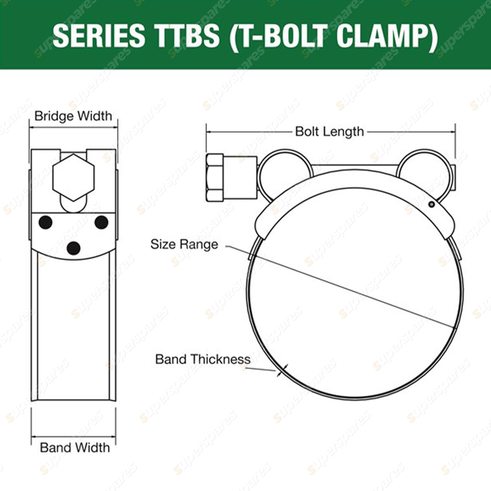 The Tridon TTBS all stainless T-Bolt clamp range provides superior design and proven reliability. |