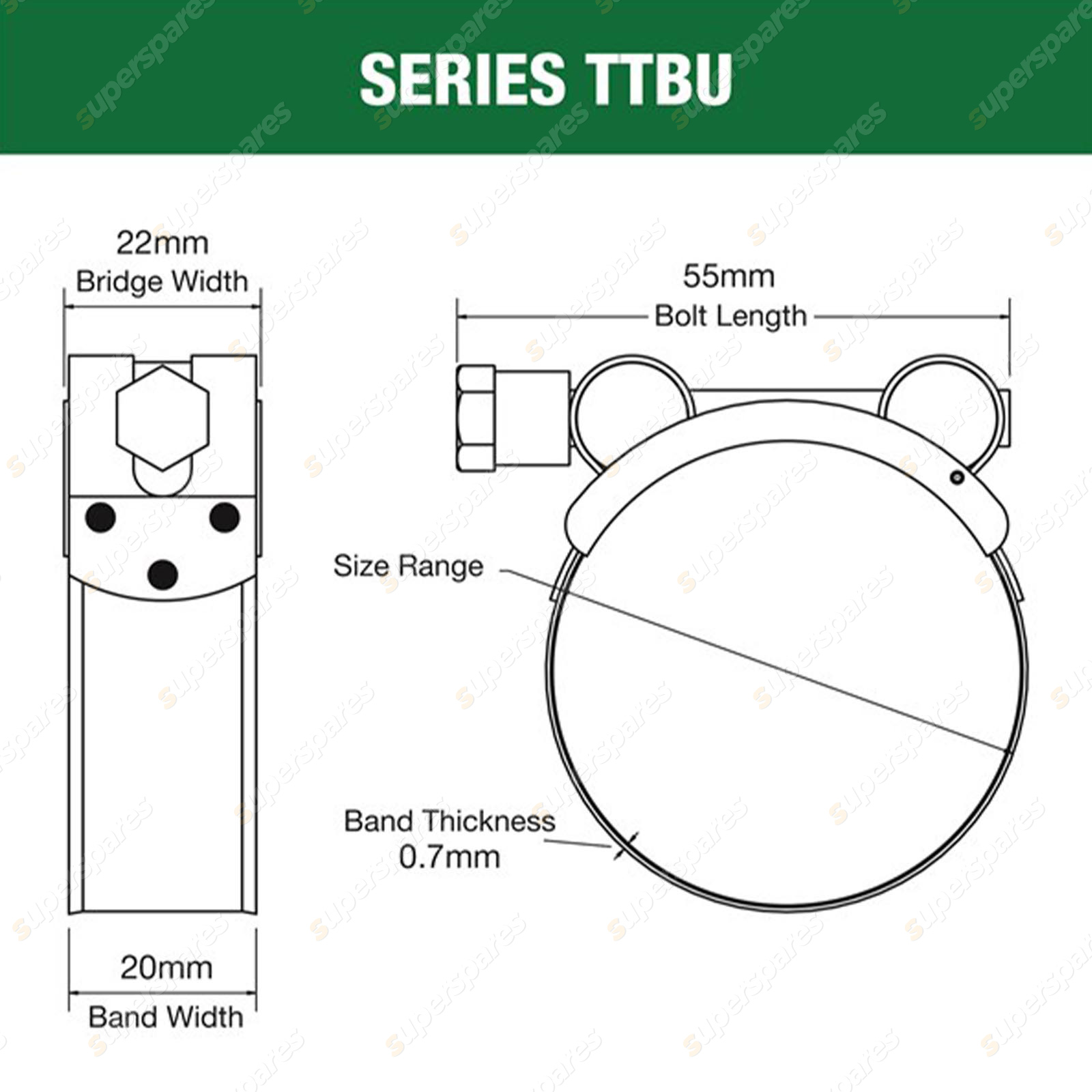 The Tridon TTBU part stainless T-Bolt Ultimate clamp range provides superior design and proven reliability. |