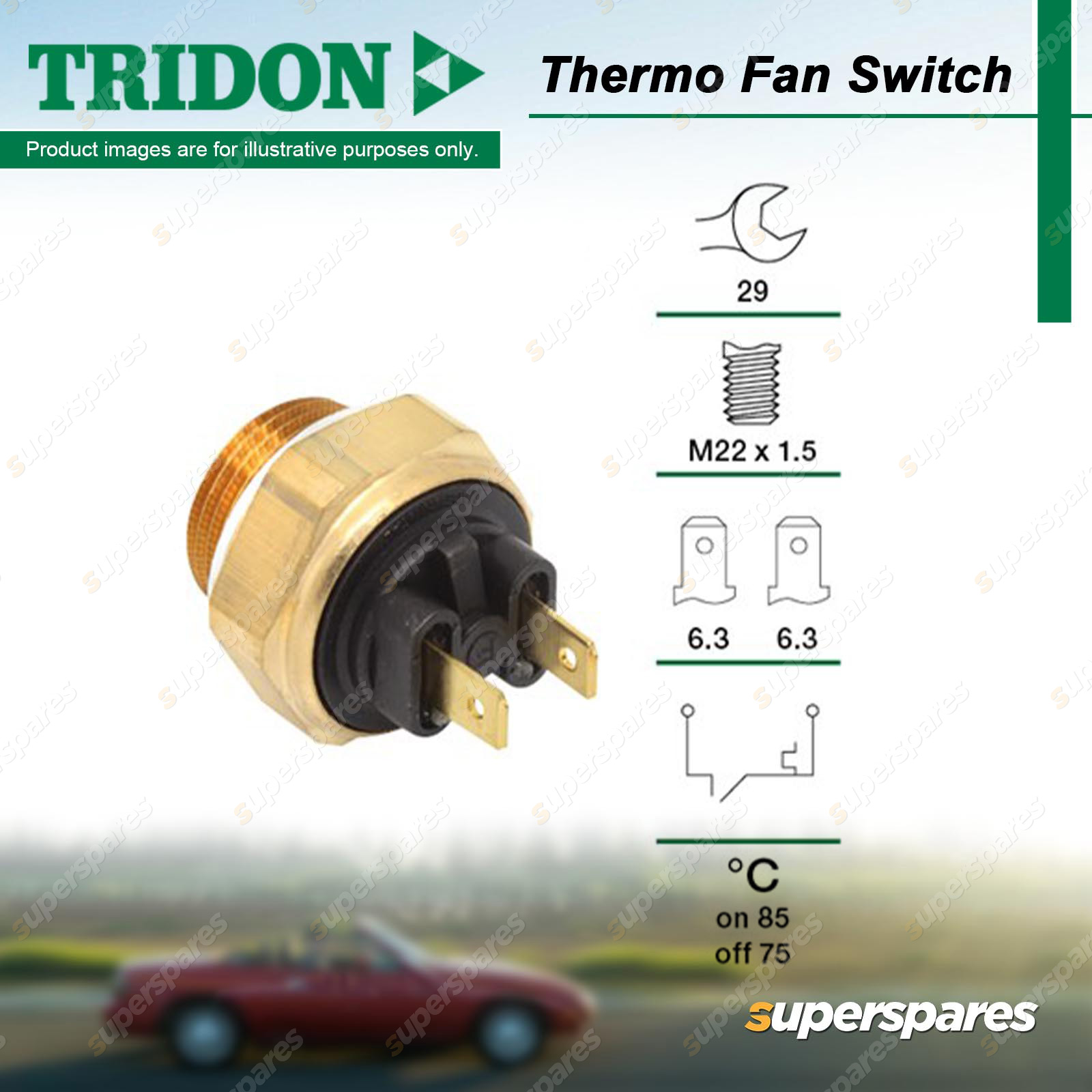 Content : 1 x Tridon Thermo Fan Switch Style : Style A Operating Temp : 85°C - 75°C Circuit Type : Normally Open |