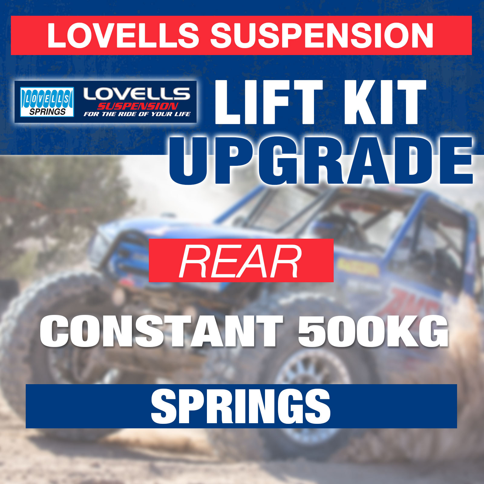 NOTICE This Product is not For Individual Selling and Must be Purchased With Our Lift Kit! Our Default Springs is Standard(0-300Kg), Now You Can Choose Other Option Based on Your Own Vehicles.If You Are Not Sure About The Options,Please State The Accessories / Extra Weight You May Have on The Front Of Your Vehicle (ie Steel Bullbar, Winch, Brush Bars, Dual Batteries) or The Load You May Bearing on The Rear Vehicle at The Checkout,We Can Give You Advise.