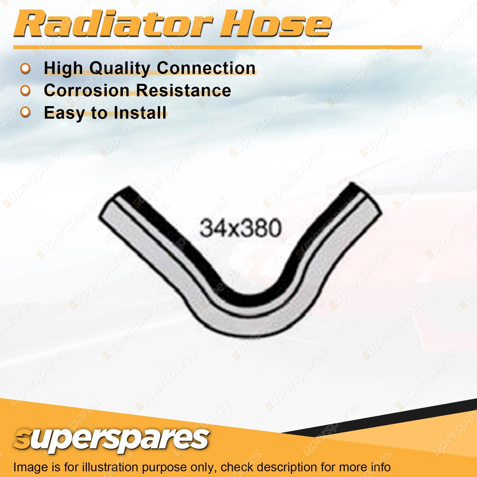 Content : 1 x Radiator Hose Brand : Superspares Position : Upper | Parameter : Length : 380mm Inside Diameter : 34mm |