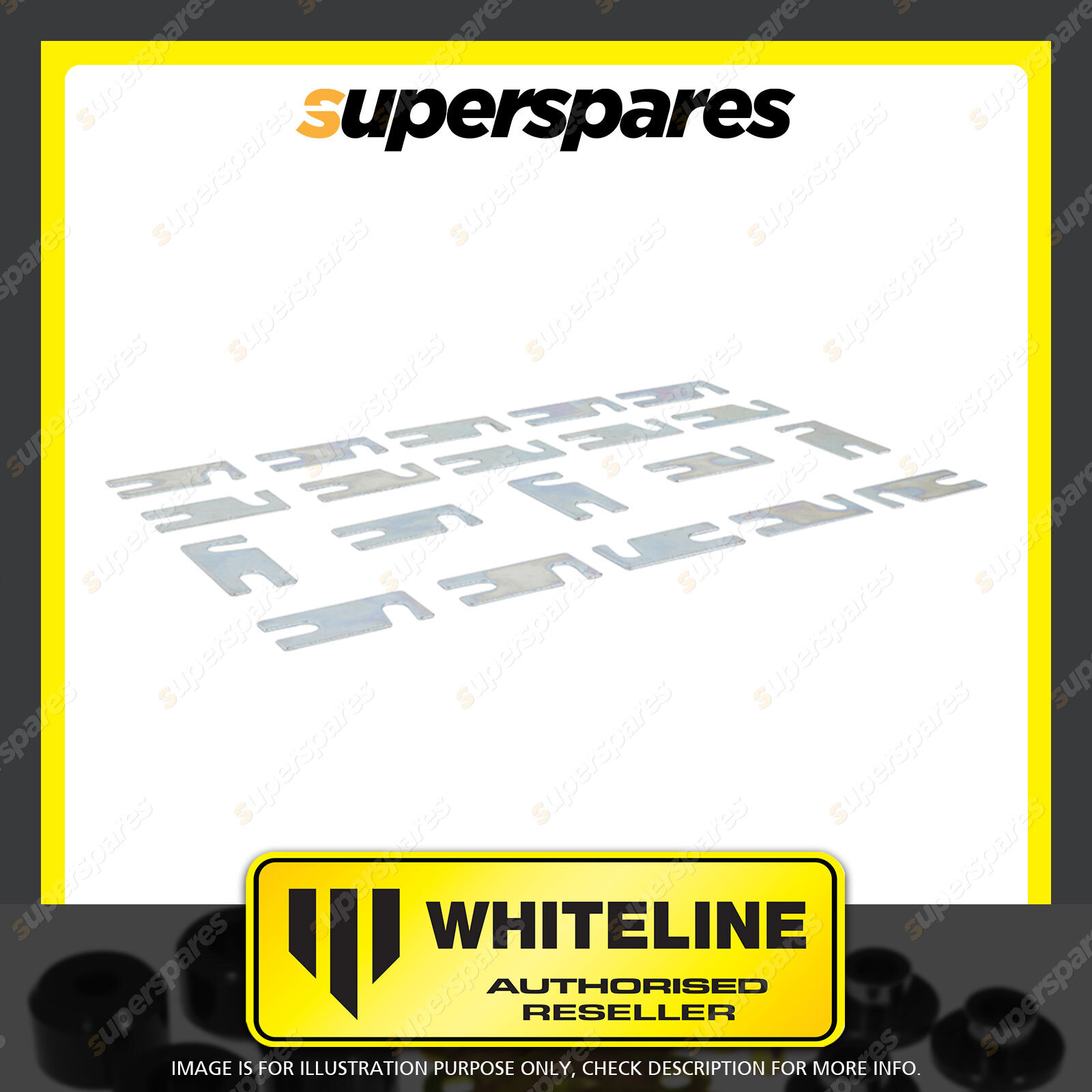 Contents : Whiteline Control Arm - Upper Alignment Shims Warranty : 3 Year / 60,000KMS Kit Contents : 100 Shims |
