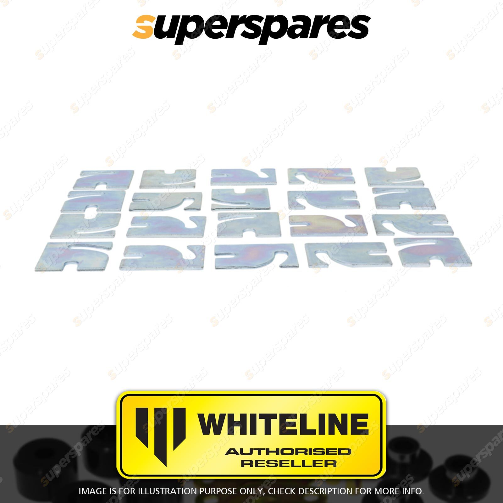Contents : Whiteline Control Arm - Upper Alignment Shims Warranty : 3 Year / 60,000KMS Kit Contents : 100 Shims |