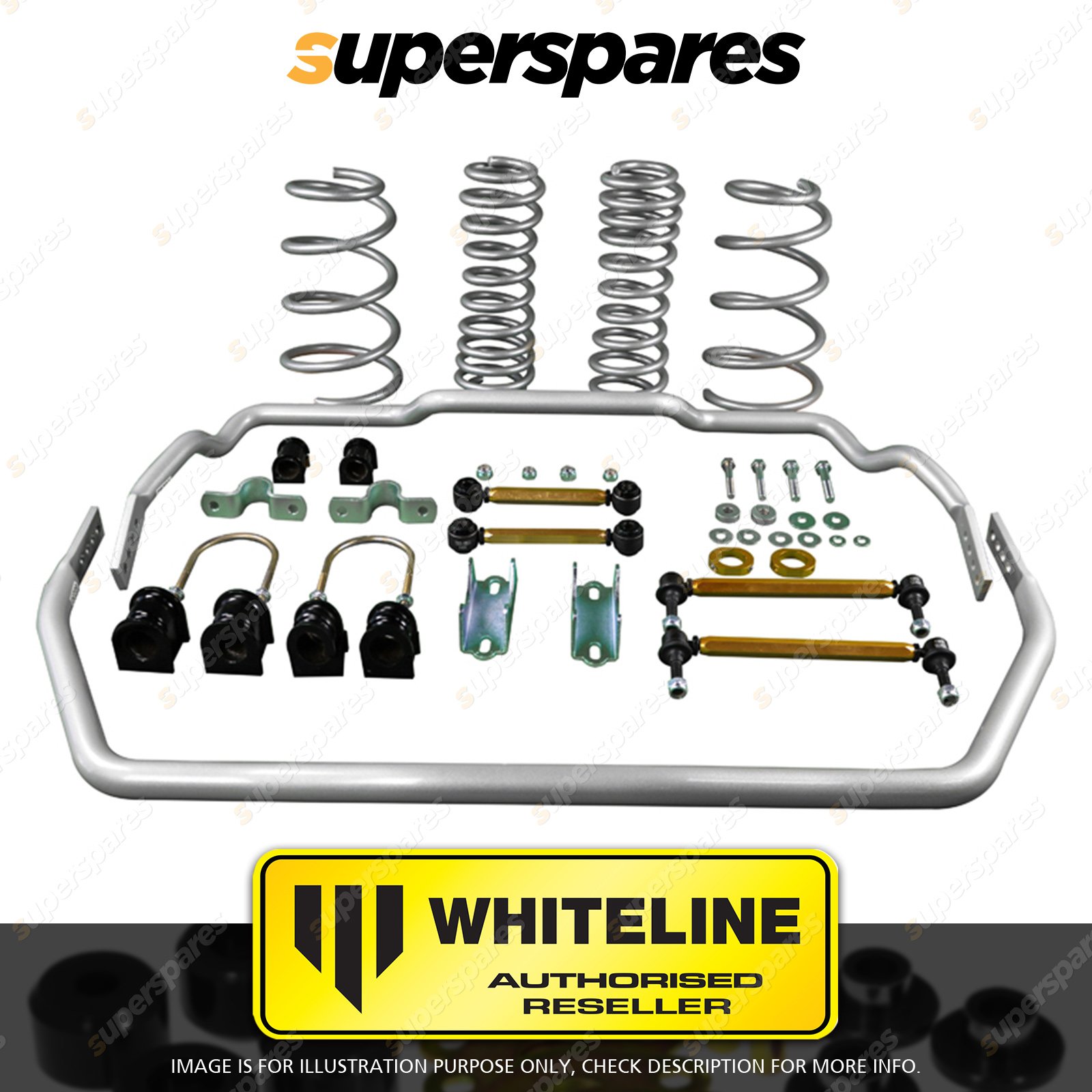 | Contents : Whiteline F and R Grip Series Kit Warranty : 3 Year / 60,000Kms Kit Contents : 4 Springs, 2 Sway Bars, 4 Links, 6 Bushings, 2 Saddles, 2 Mounts, 2 Lateral Locks, 2 U-Bolts, 4 Bolts, 10 Washers, 4 Nuts, Install Guide |
