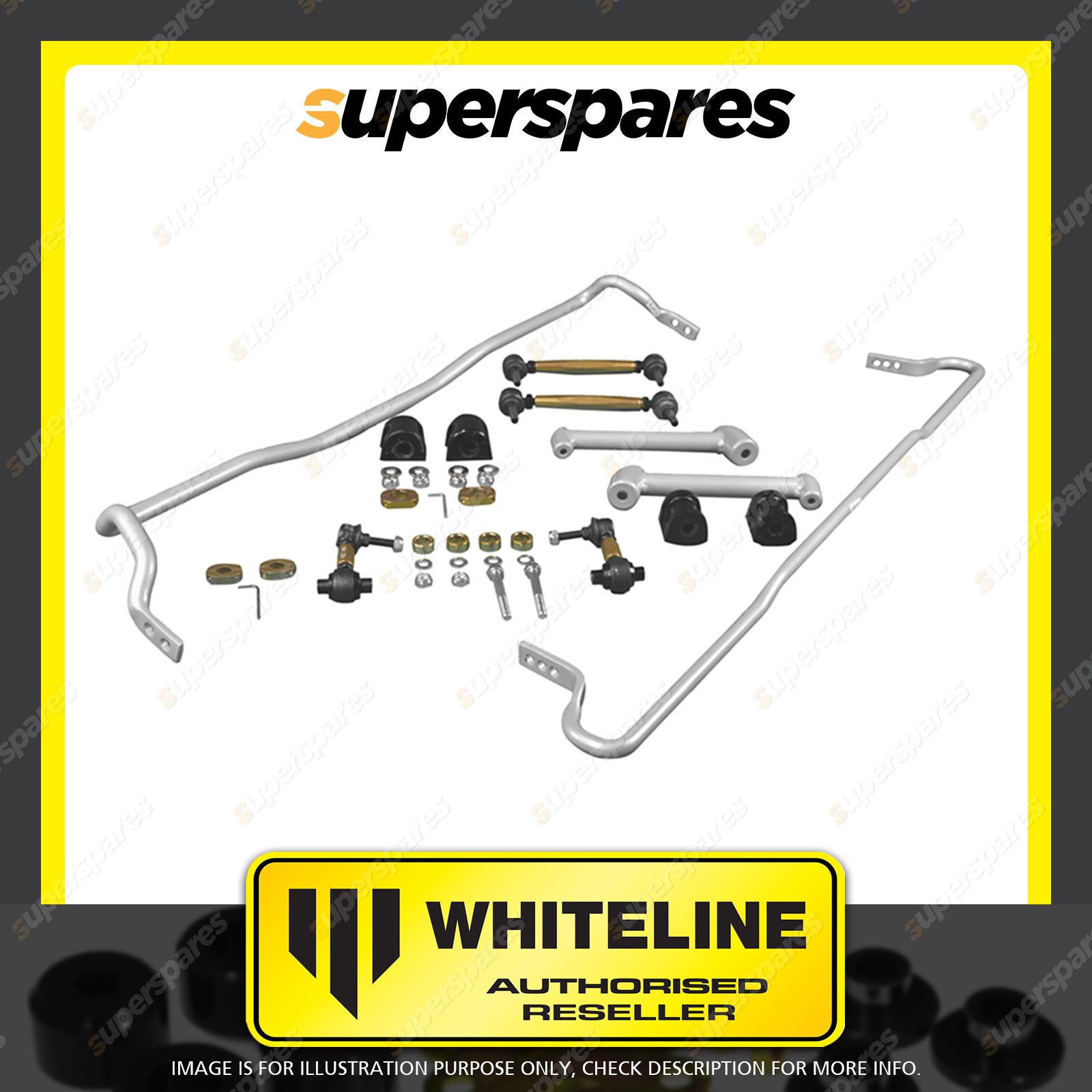 | Contents : Whiteline F and R Sway bar - vehicle kit Warranty : 3 Year / 60,000Kms Kit Contents : 2 Sway Bars, 4 Links, 4 Bushings, 2 Braces, 4 Lateral Locks, 4 Spacers, 2 Bolts, 8 Washers, 6 Nuts, Install Guide, Grease |