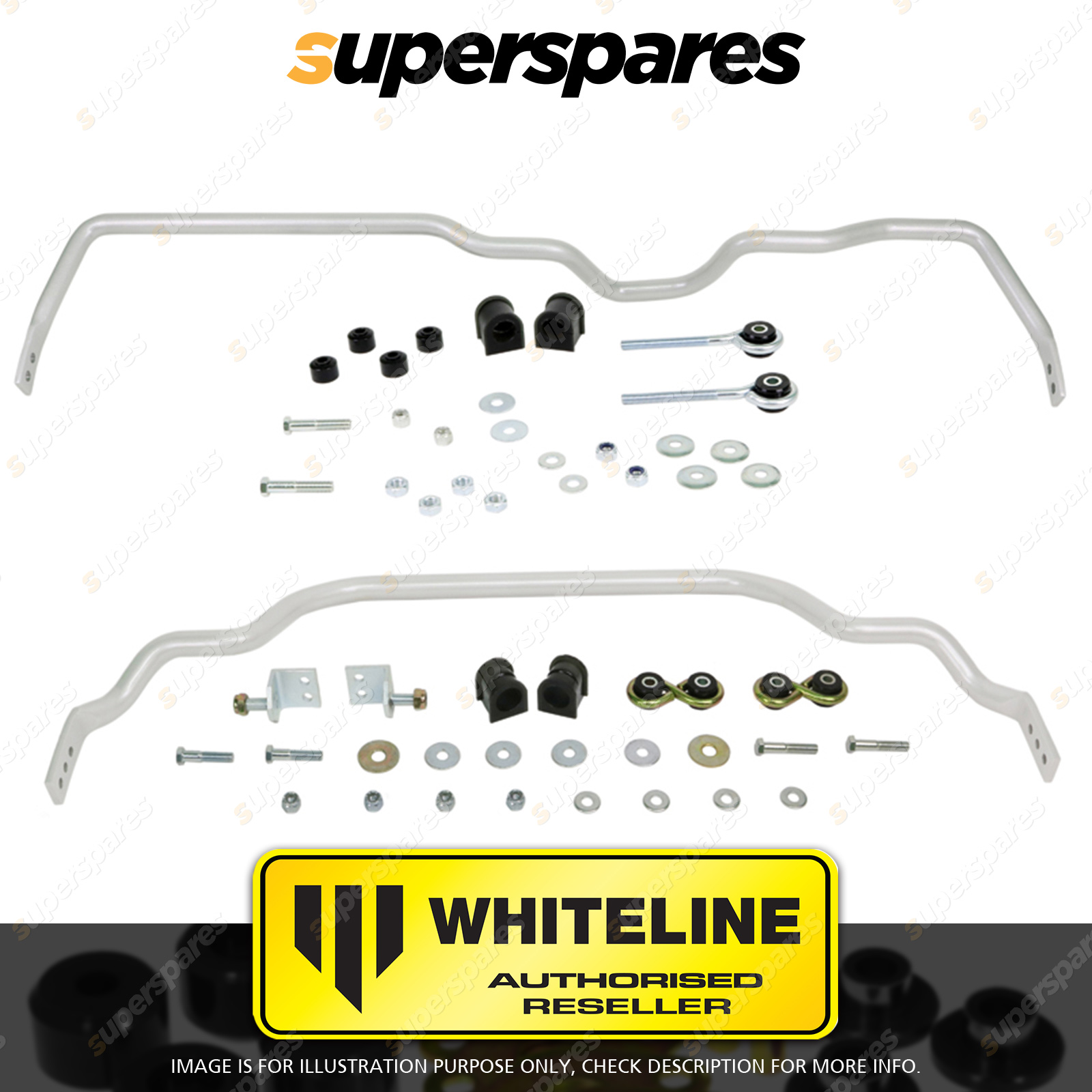 | Contents : Whiteline F and R Sway bar - vehicle kit Warranty : 3 Year / 60,000Kms Kit Contents : 2 Sway Bars, 4 Links, 8 Bushings, 2 Brackets, 6 Bolts, 18 Washers, 14 Nuts, Install Guide, Grease |