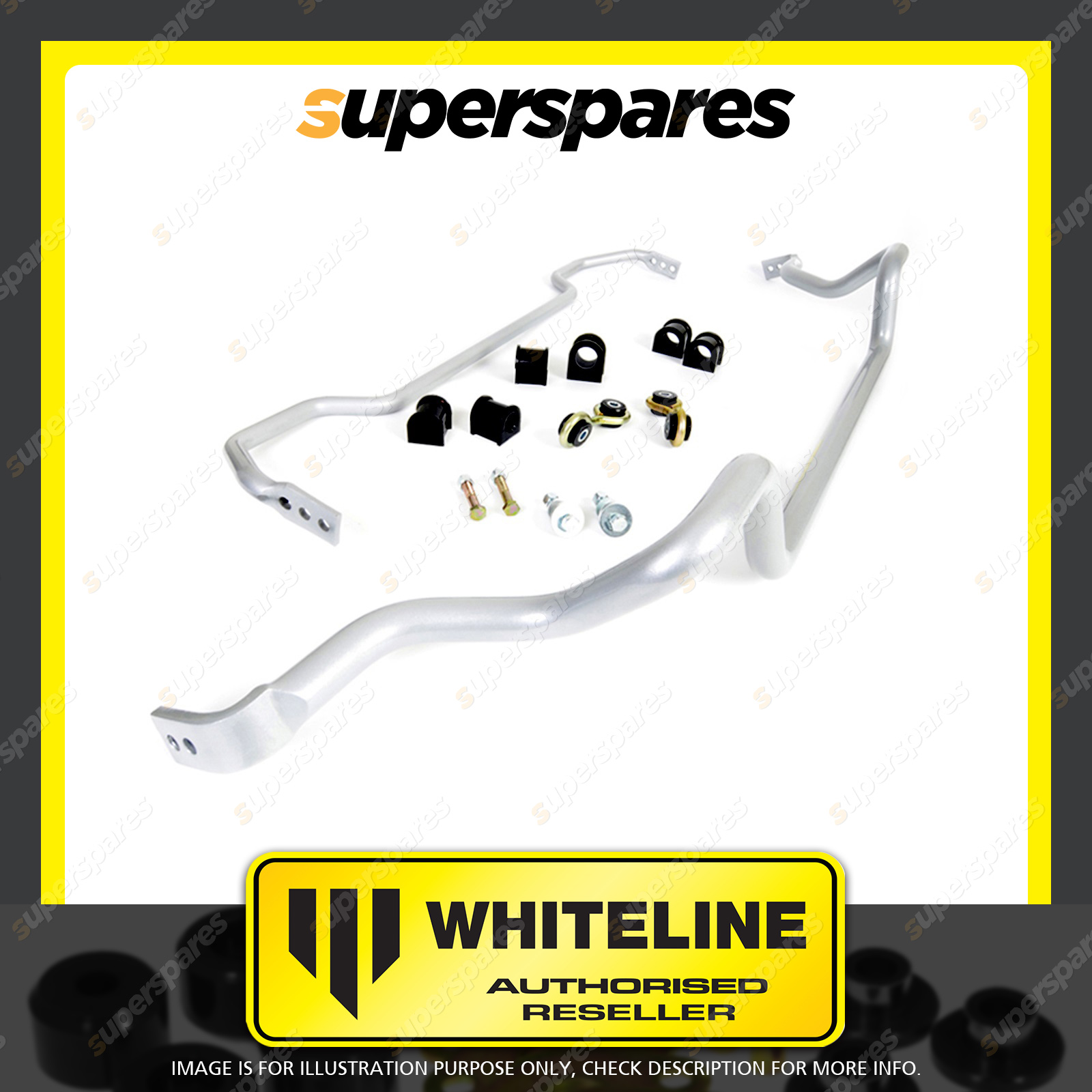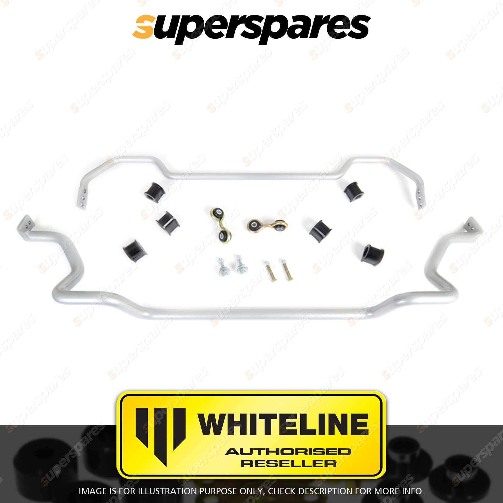 | Contents : Whiteline F and R Sway bar - vehicle kit Warranty : 3 Year / 60,000Kms Kit Contents : 2 Sway Bars, 2 Links, 6 Bushings, 4 Bolts, 4 Washers, 4 Nuts, Install Guide, Grease |