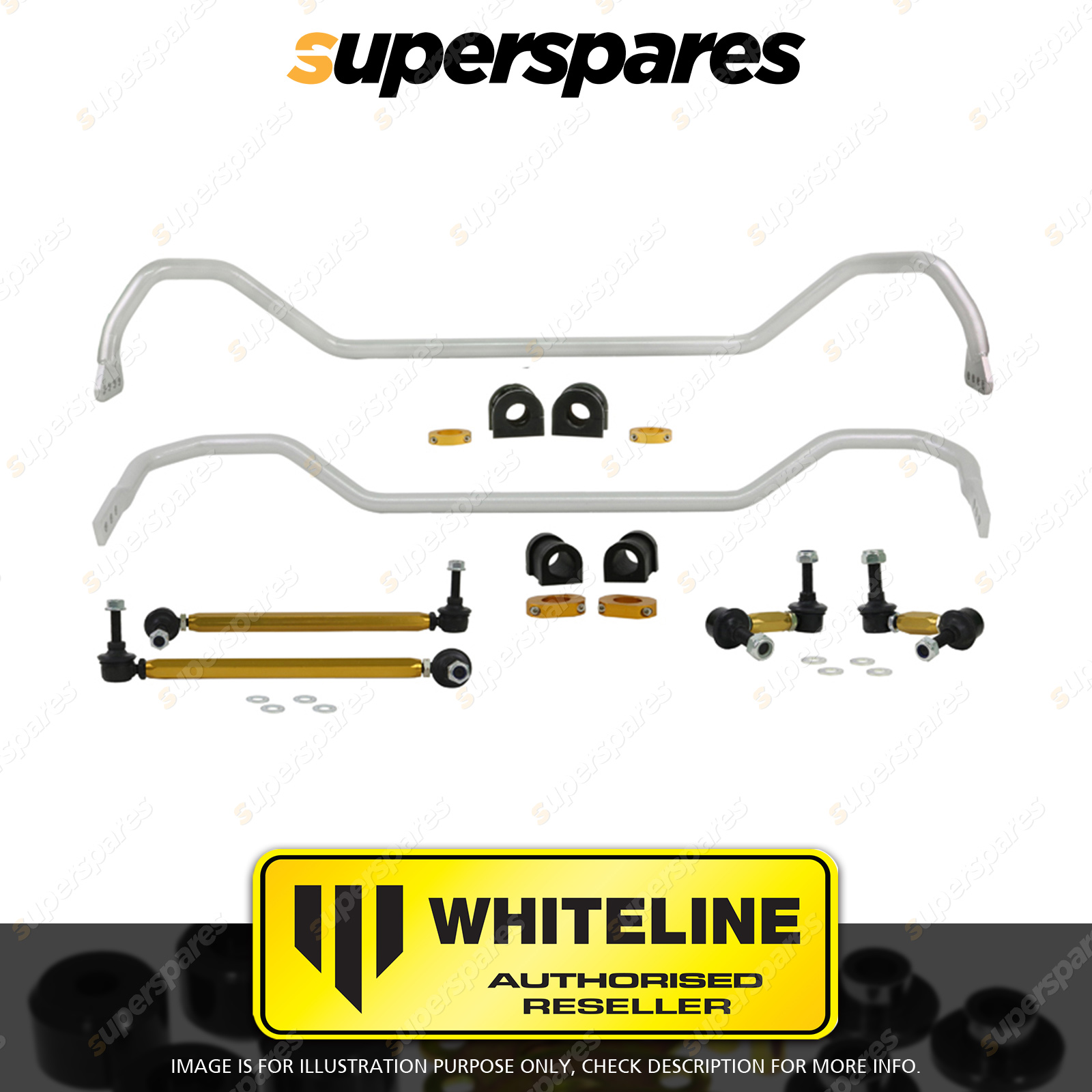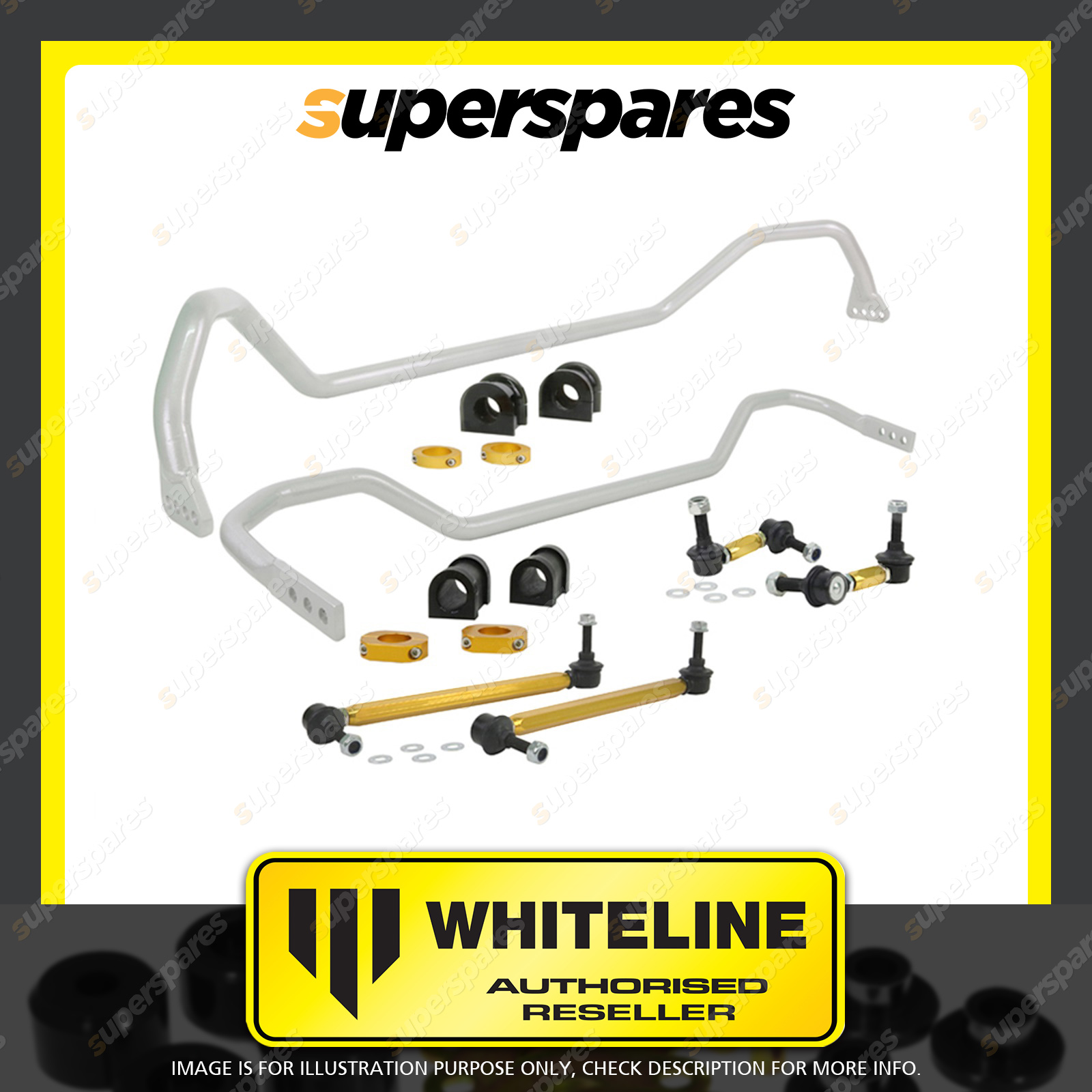 | Contents : Whiteline F and R Sway bar - vehicle kit Warranty : 3 Year / 60,000Kms Kit Contents : 2 Sway Bars, 4 Links, 4 Bushings, 4 Lateral Locks, 8 Washers, Install Guide, Grease |