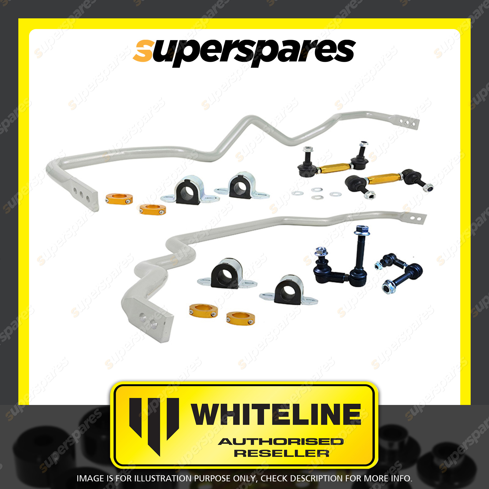| Contents : Whiteline F and R Sway bar - vehicle kit Warranty : 3 Year / 60,000Kms Kit Contents : 2 Sway Bars, 4 Links, 4 Bushings, 4 Saddles, 4 Lateral Locks, 4 Washers, Install Guide, Grease |