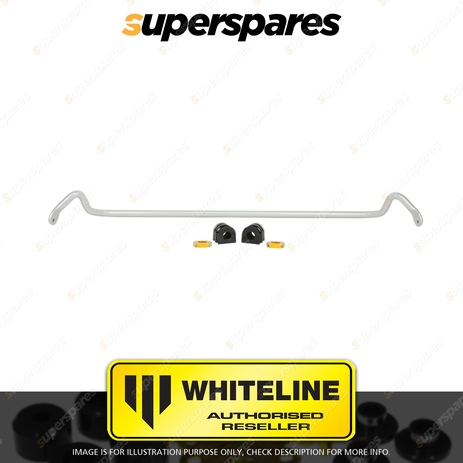 | Contents : Whiteline Front Sway bar Warranty : 3 Year / 60,000Kms Kit Contents : 1 Sway Bar, 2 Bushings, 2 Lateral Locks, Install Guide | Kit Specifications : Diameter(mm) : 22mm |