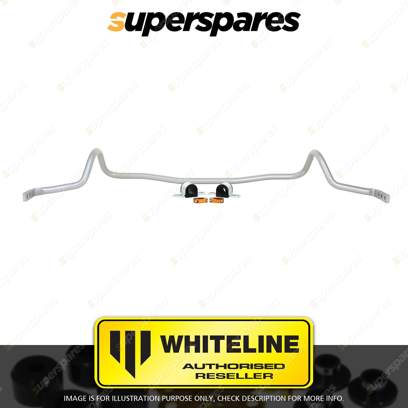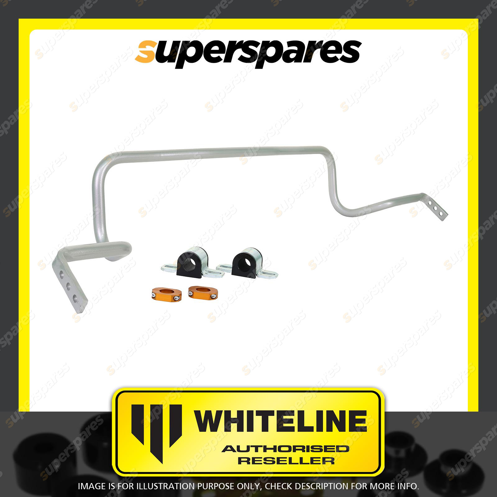 Contents : Whiteline Sway Bar - 22mm 3 Point Adjustable Position : Front Warranty : 3 Year / 60,000Kms Kit Contents : 1 Sway Bar, 2 Bushings, 2 Saddles, 2 Lateral Locks, Install Guide, Grease |