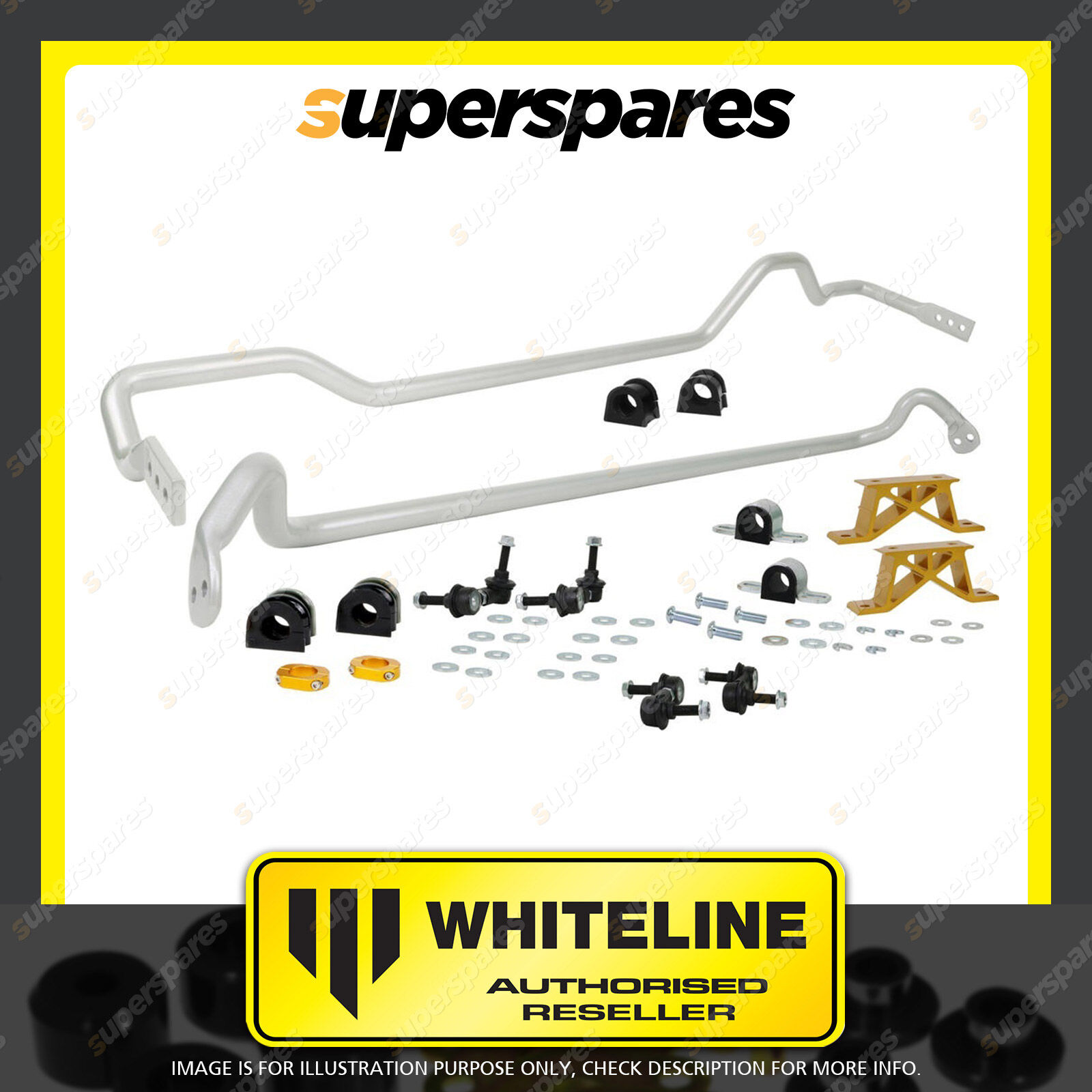 | Contents : Whiteline Front and Rear Sway Bar - Vehicle Kit Warranty : 3 Year / 60,000Kms Kit Contents : 2 Sway Bars, 4 Links, 6 Bushings, 2 Lateral Locks, 2 Saddles, 2 Mounts, 4 Bolts, 28 Washers |