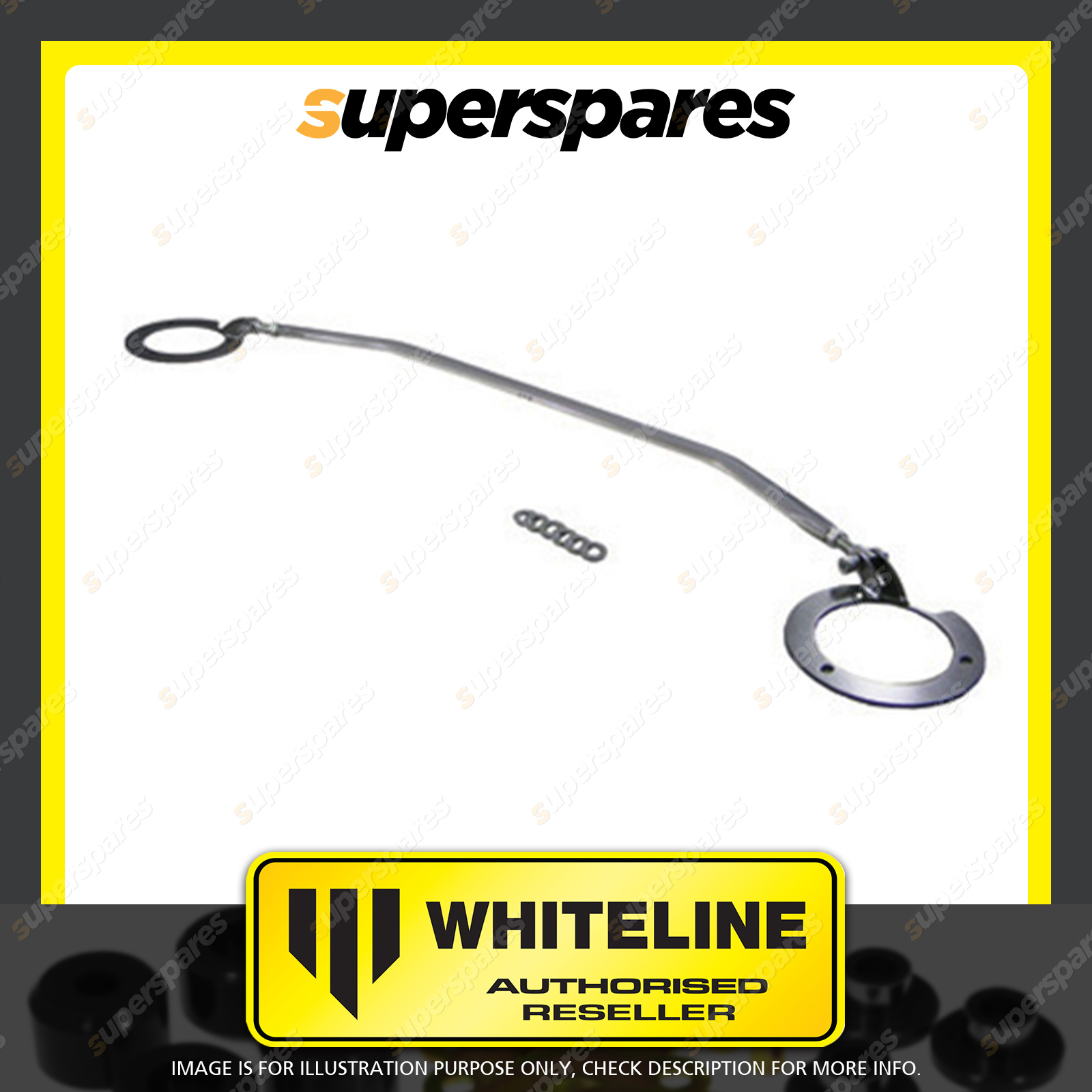| Contents : Whiteline Front strut tower Brace Warranty : 3 Year / 60,000Kms Kit Contents : 1 Strut Brace, 6 Washers, Install Guide | Kit Specifications : Material : Polished Alloy |